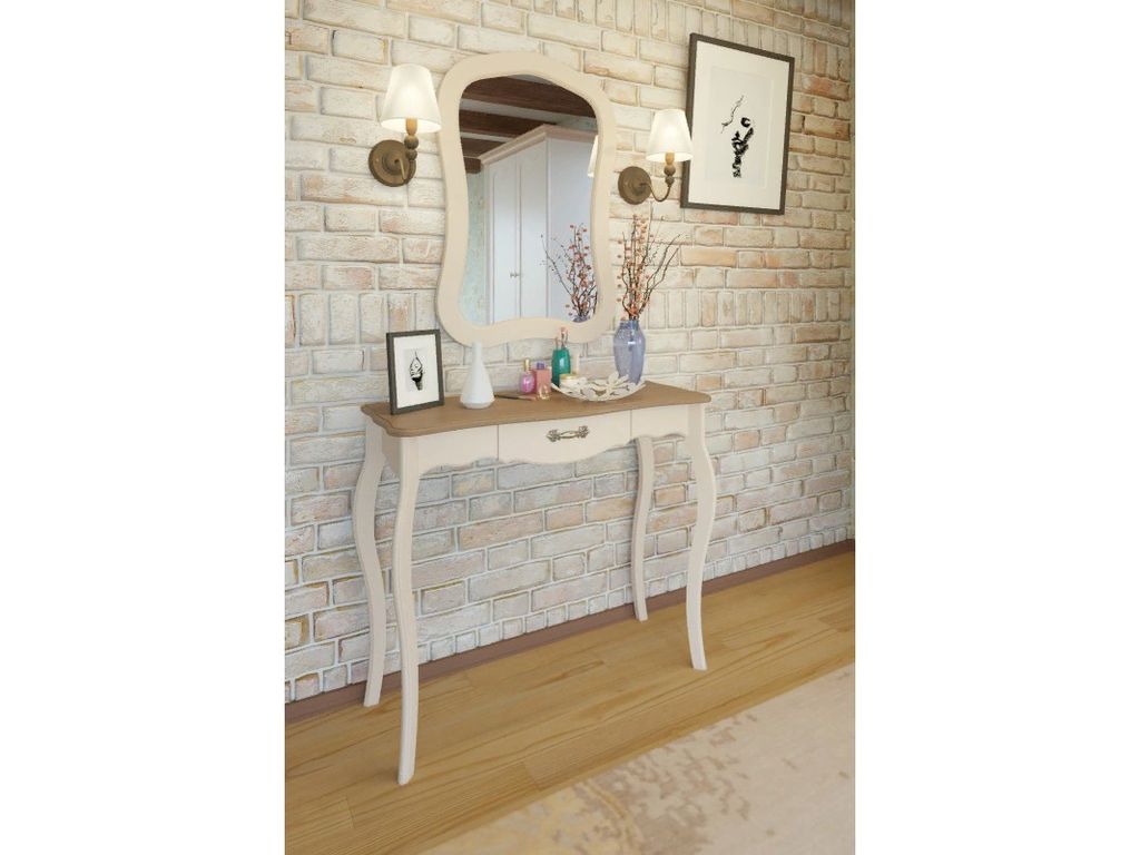 Описание: навесное зеркало, может использоваться как в комплекте сконсолью Лебо, так и самостоятельно. Покрытие - укрывистый бежевый воск, структура древесины почти не просматривается.