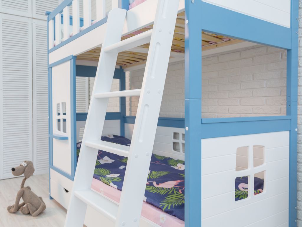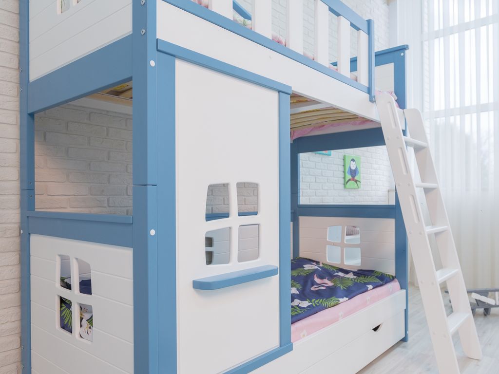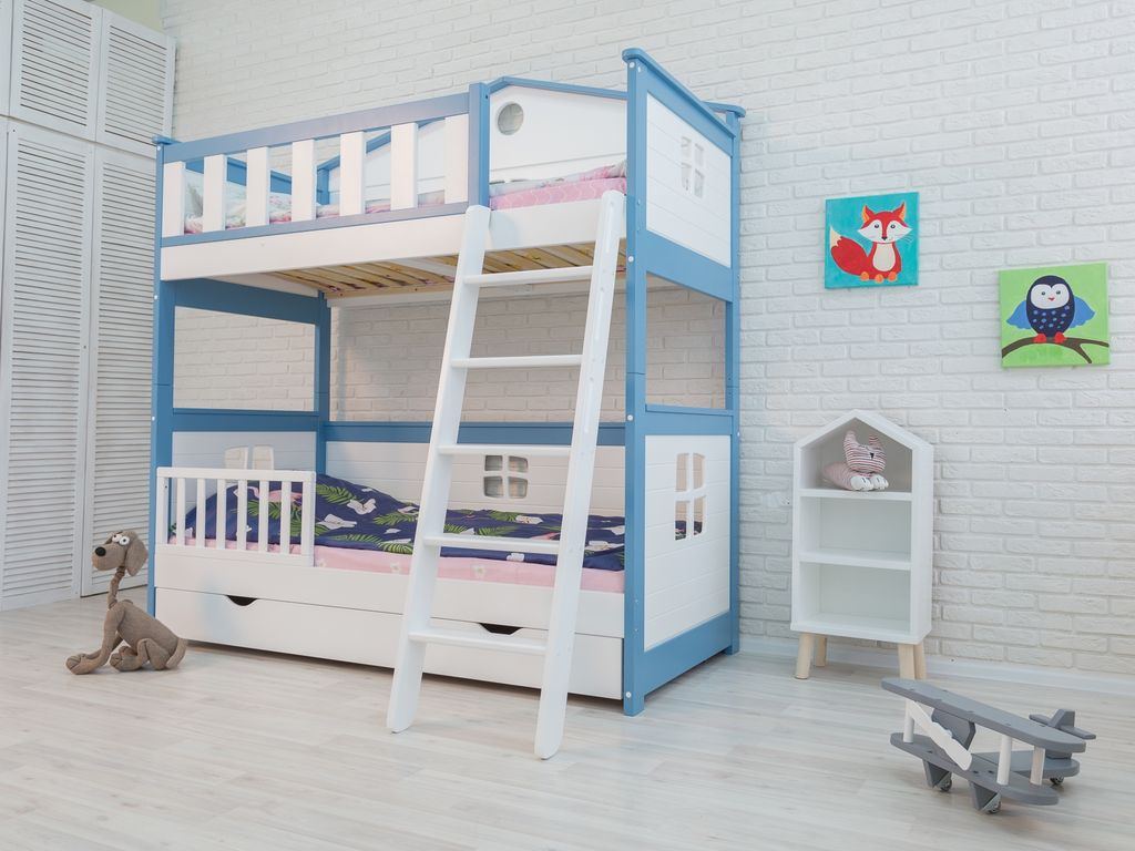 Материал: массив берёзы с элементами мдф. В основании кровати деревянные ламели. Разбирается на 2 одноярусные кровати.