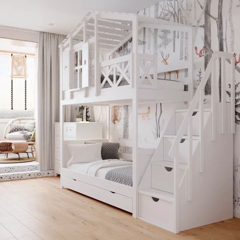 Лестница-комод не входит в комплект и приобретается отдельно. В случае ее покупки, обычная приставная лестница в комплекте не поставляется.