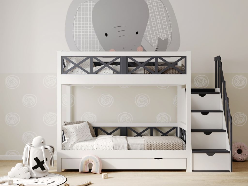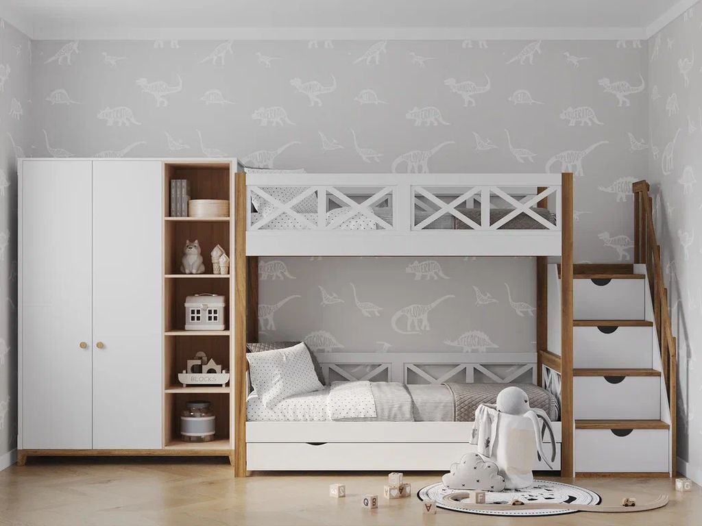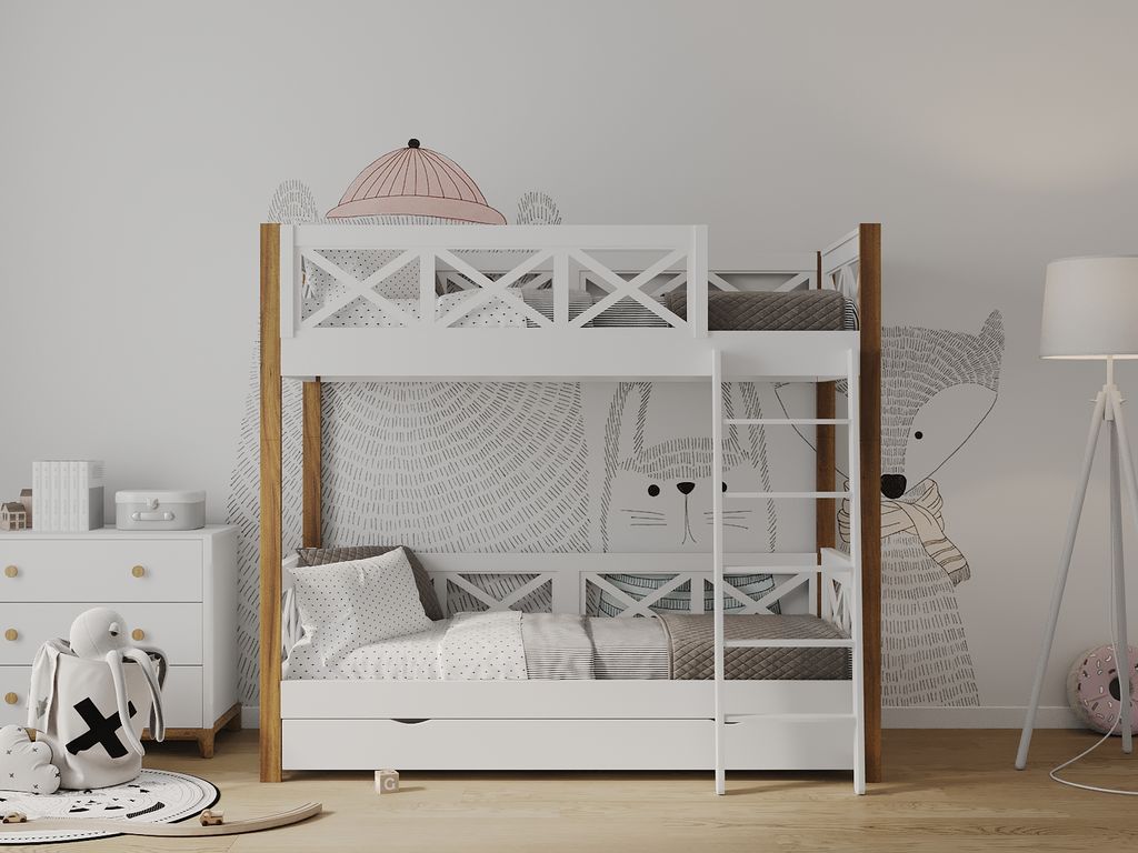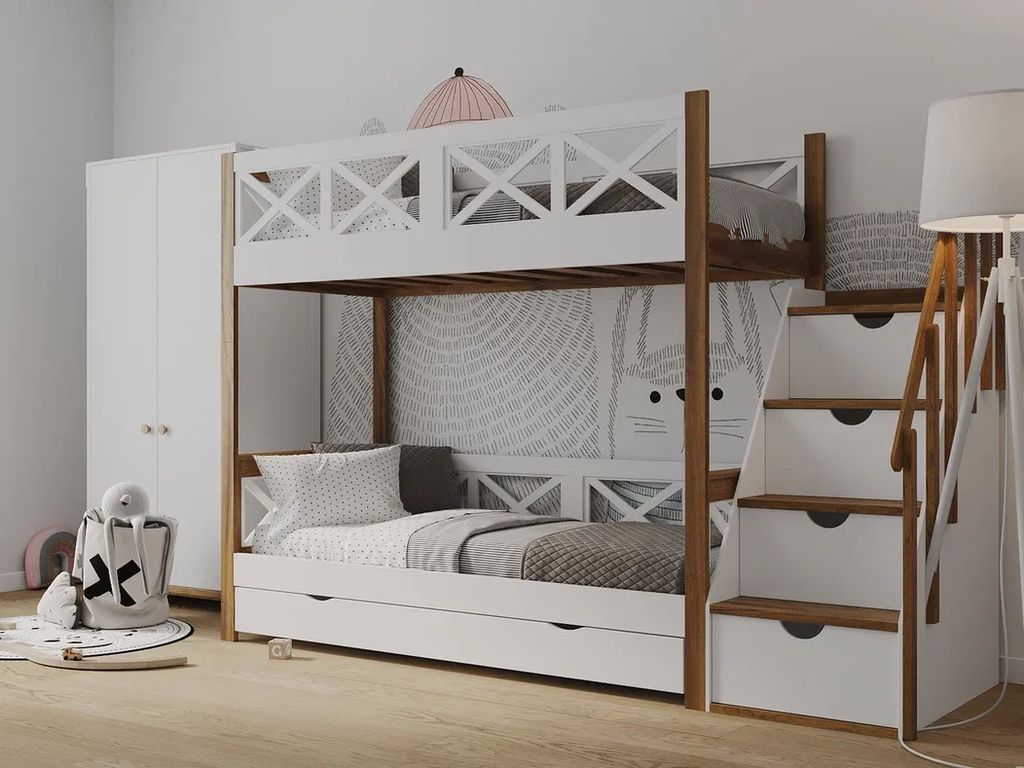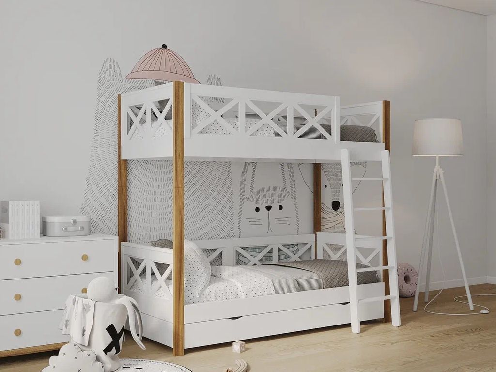 Материал: массив берёзы с элементами мдф. В основании кровати деревянные ламели. Разбирается на 2 одноярусные кровати.