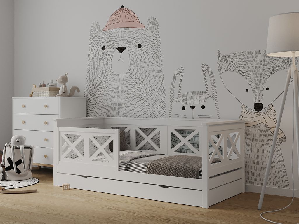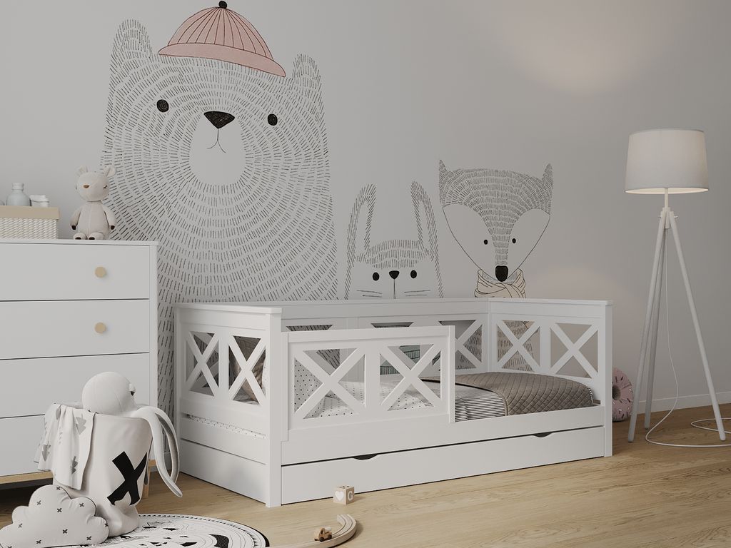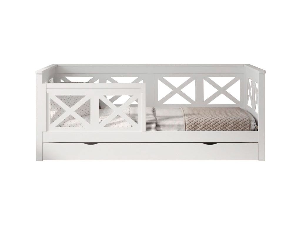 Кроватка изготовлена из массива берёзы с элементами мдф. В основании - деревянные ламели.