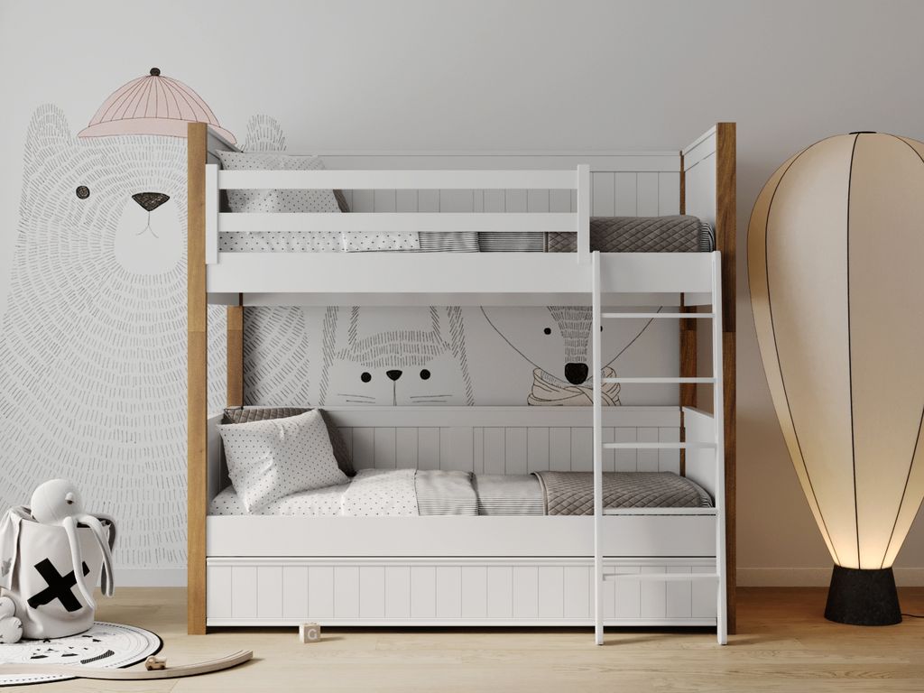 Материал: массив берёзы с элементами мдф. В основании кровати деревянные ламели. Разбирается на 2 одноярусные кровати.