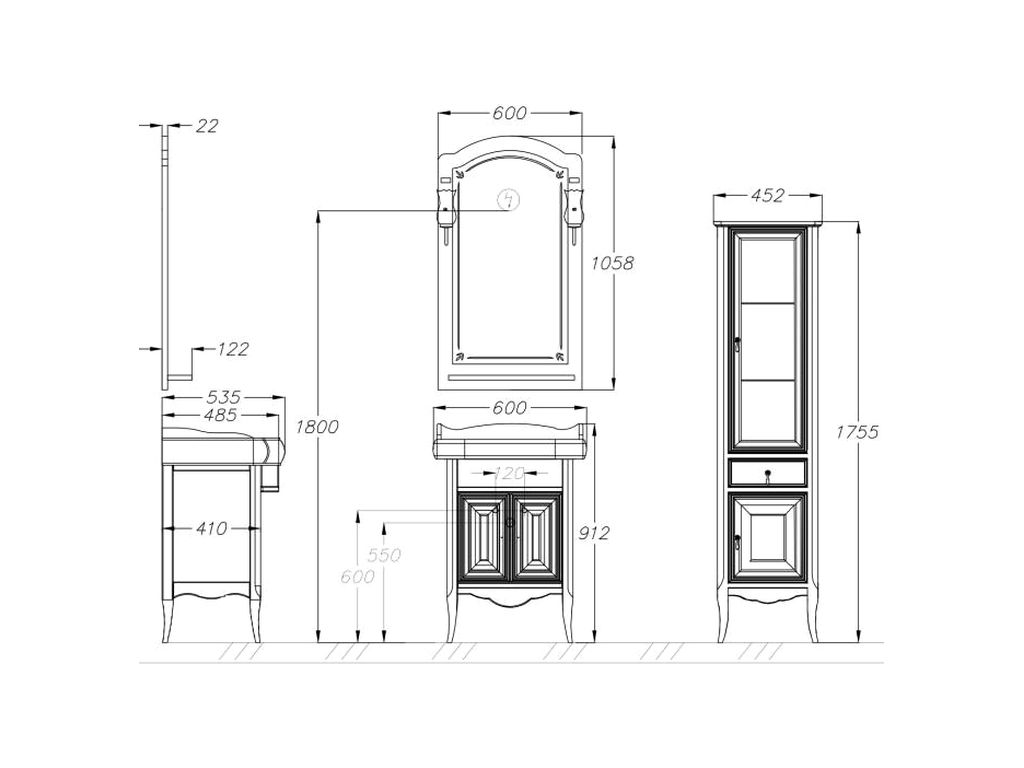| Размер зеркала (Ш×В×Г), мм | 600×1058×122 |