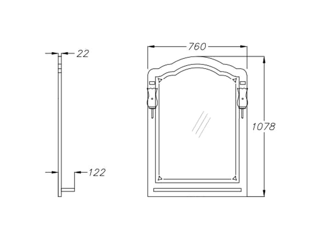 Размер зеркала (Ш×В×Г), мм 760×1078×122