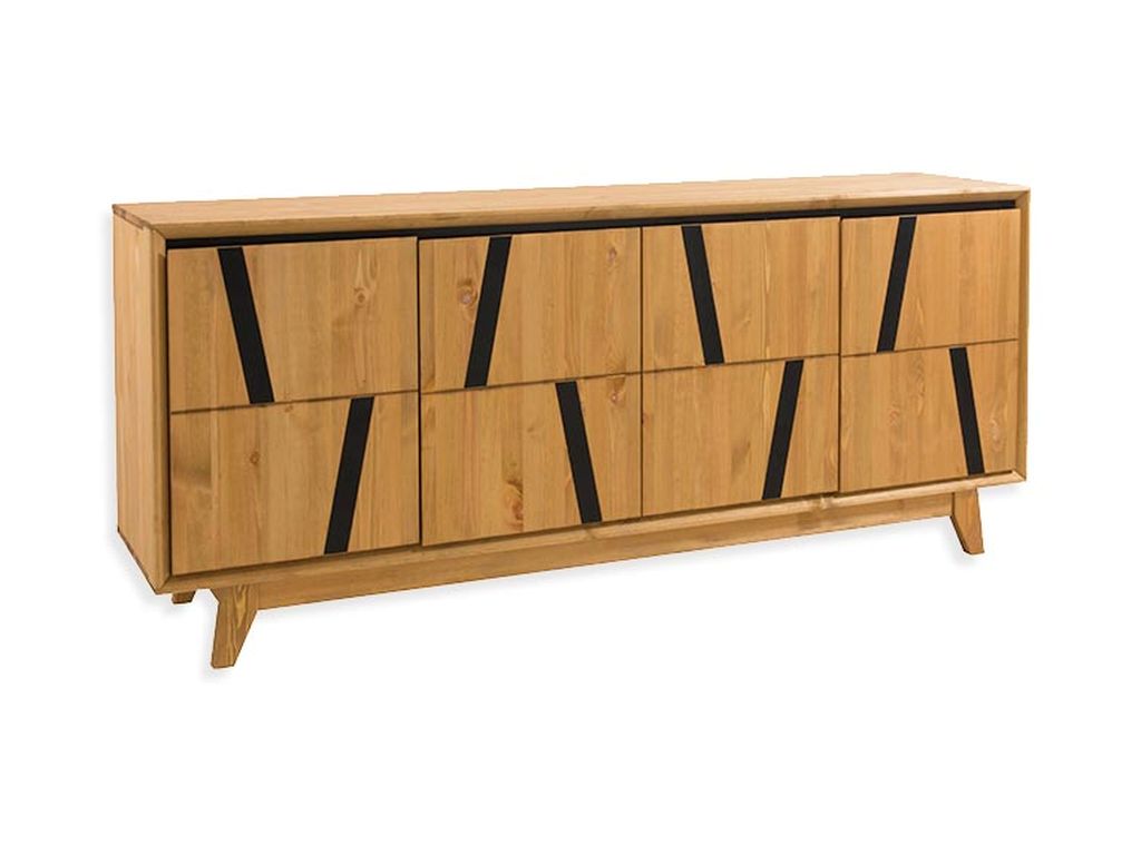 4 распашные дверцы, за дверцами 2 выдвижных ящика и полки.