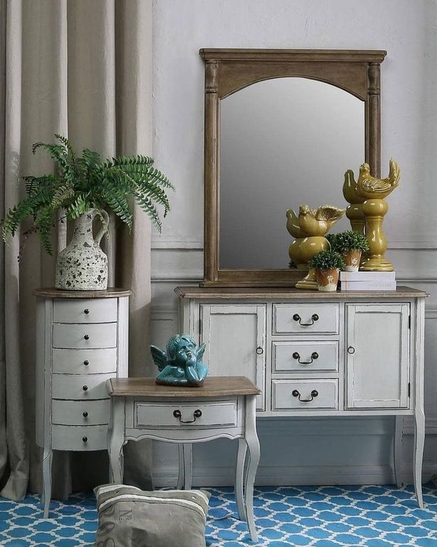 В коллекции большой выбор миниатюрных кофейных столиков, но есть и представители обеденных групп. Столешницы и круглые, и прямоугольные. Консоли и бюро: каждый из вариантов идеален для того, чтобы обыграть пустующий простенок в комнате. Если это проходная зона, то лучше предпочесть полукруглую конфигурацию, которая практически не занимает места. Если же площадь позволяет, то можно остановиться на круглой эффектной консоли или на практичной прямоугольной, на которой разместятся и настольные лампы, и различный интерьерный декор. Также производитель предлагает дополнить мебельный комплект комодами, витринами, стеллажами или зеркалами в виде надставки к мебельной основе. Последние, кстати, способны превратить самую обычную обстановку спальни в атмосферный будуар XVIII-XIX веков.