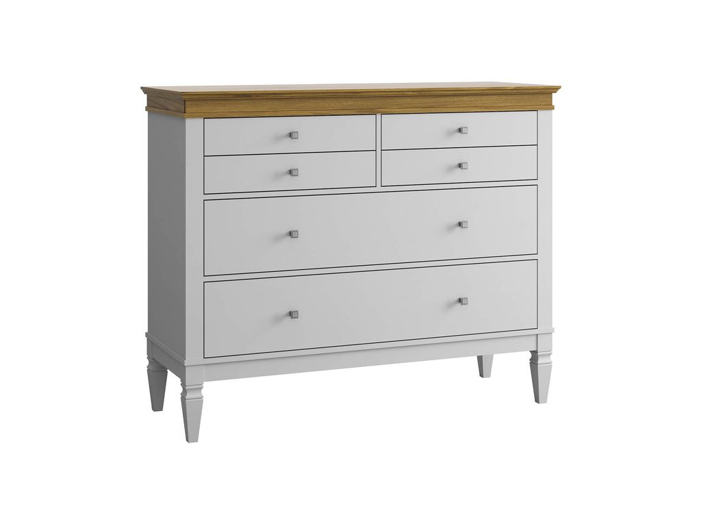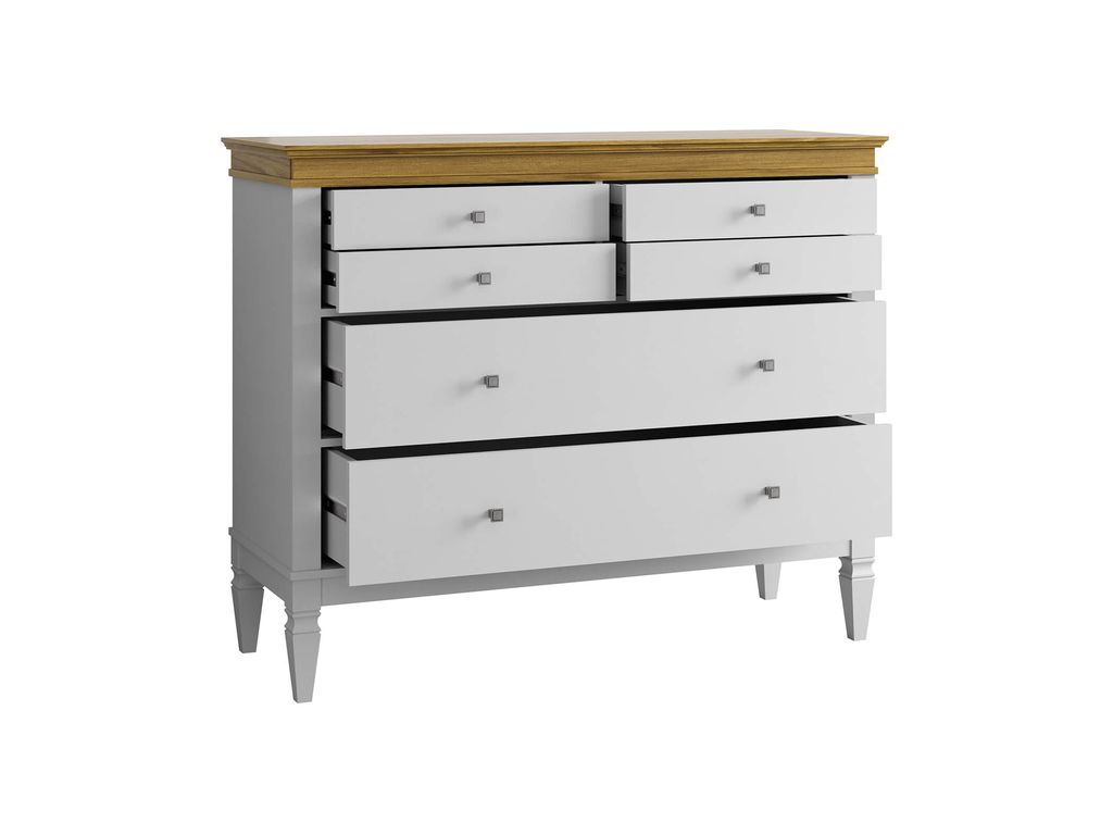 Описание: комод оснащен двумя широкими и четырьмя узкими ящиками. Высокие ножки обеспечивают оптимальный доступ при уборке.