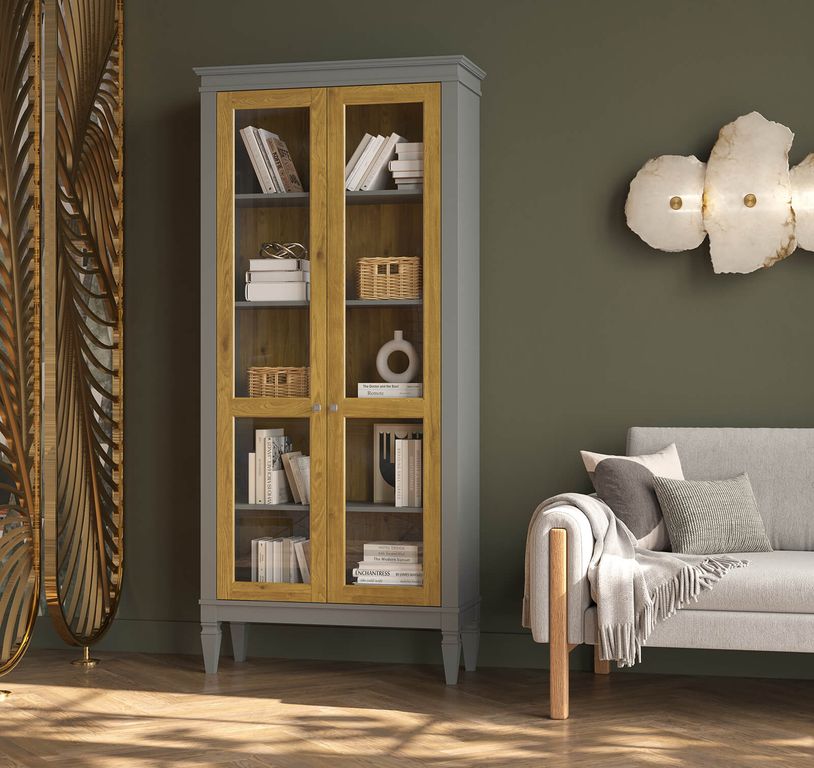 Шкаф для посуды Ольса-С 220 (серый 7042 + антик 24)