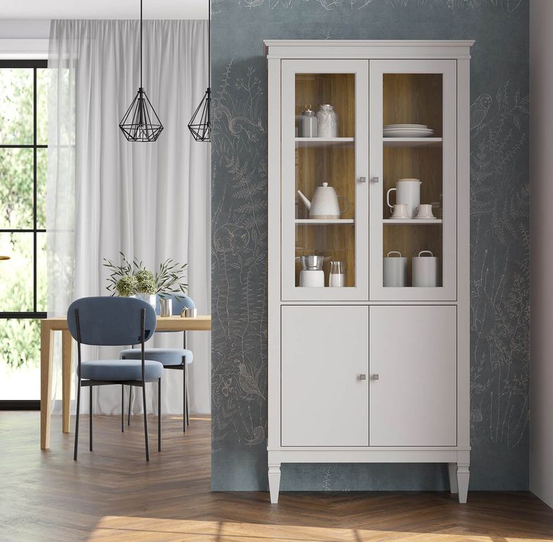 Описание: шкаф для посуды "Ольса-С" 202 - отличный вариант для хранения. Оснащен четырьмя вместительными полками за двумя стеклянными дверями и двумя глухими дверями.