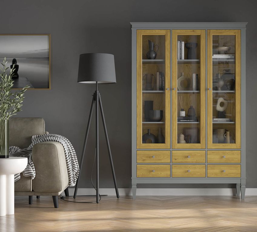 Описание: шкаф для посуды "Ольса-С" 306 - отличный вариант для хранения. Оснащен девятью вместительными полками за стеклянными дверями и шестью выдвижными ящиками.