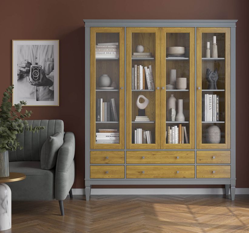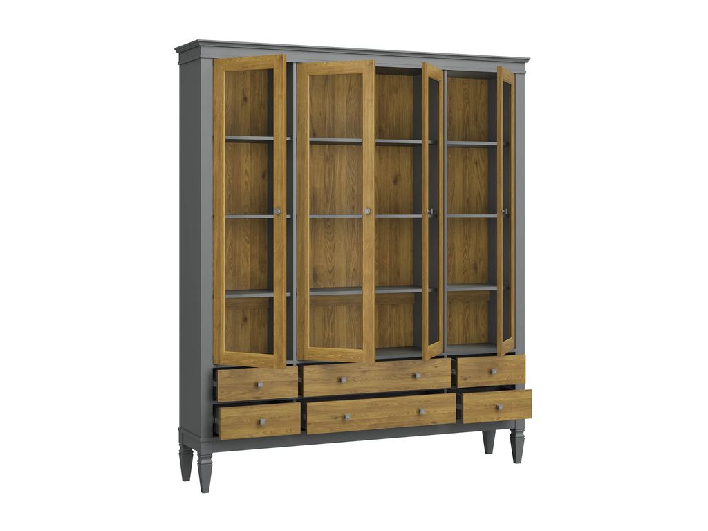 Описание: шкаф для посуды "Ольса-С" 406 - отличный вариант для хранения. Оснащен 12 вместительными, съемными полками за стеклянными дверями и 6 выдвижными ящиками снизу.