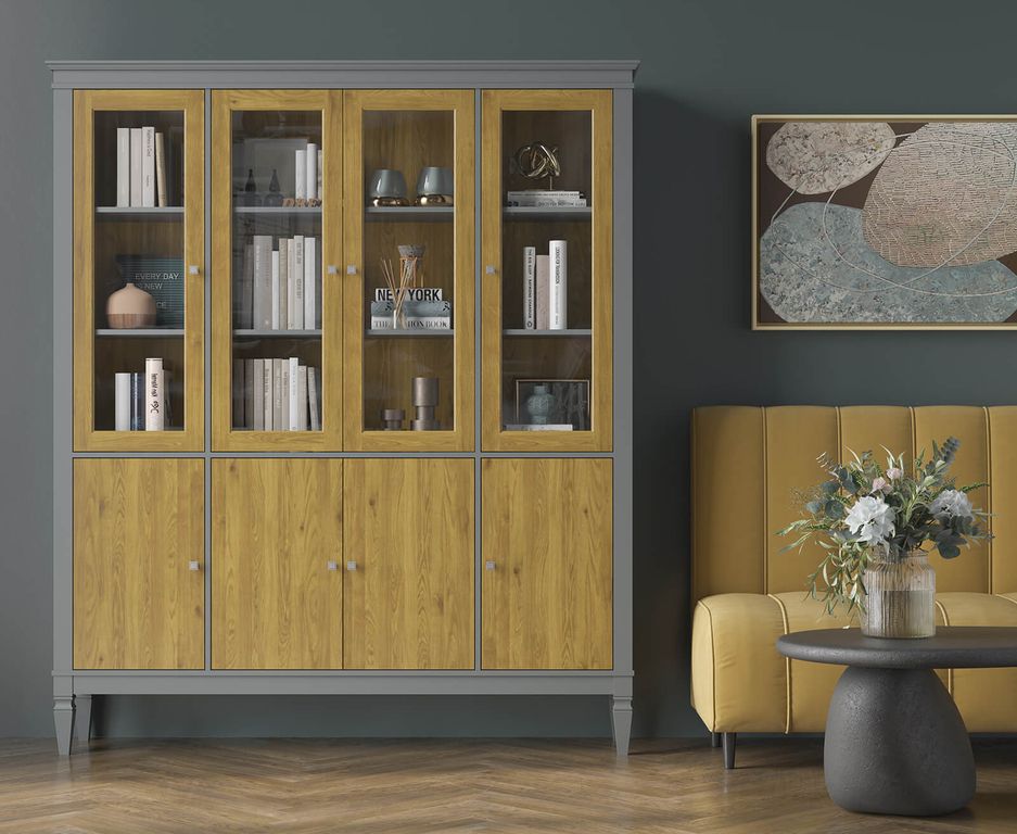 Описание: шкаф для посуды "Ольса-С" 440 - отличный вариант для хранения. Оснащён 16 вместительными полками за стеклянными дверями сверху и филенчатыми дверями снизу.