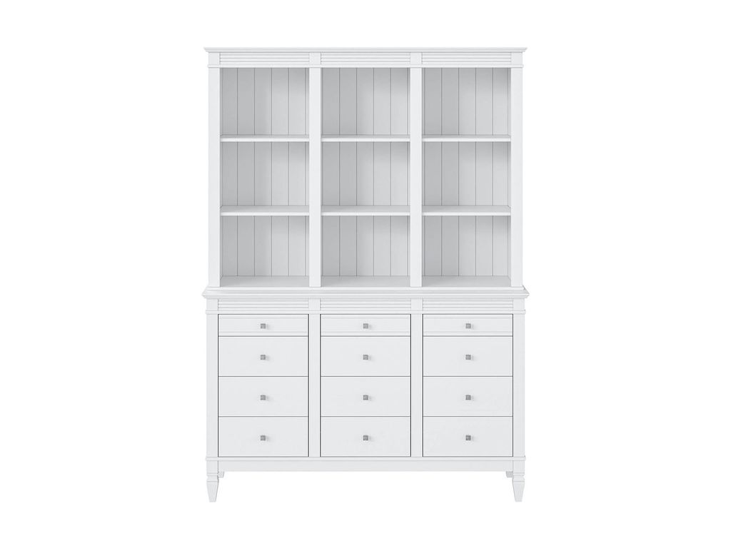Описание: буфет выполнен из массива сосны. Удобный и вместительный, очень прост, но при этом функционален. Отлично впишется как в обеденную, так и в гостиную. Буфет визуально разделен на 3 секции которые укомплектованы шестью полками сверху и двенадцатью ящиками снизу.