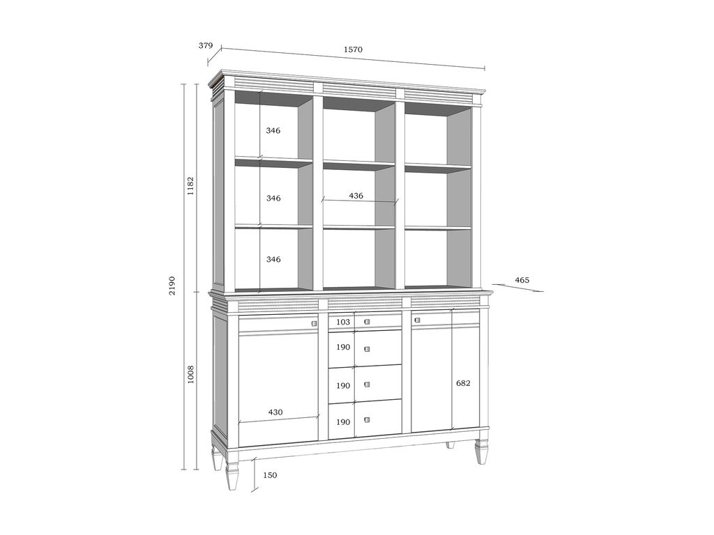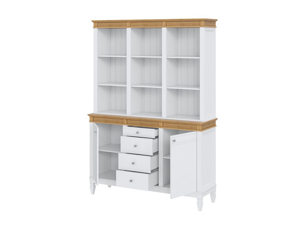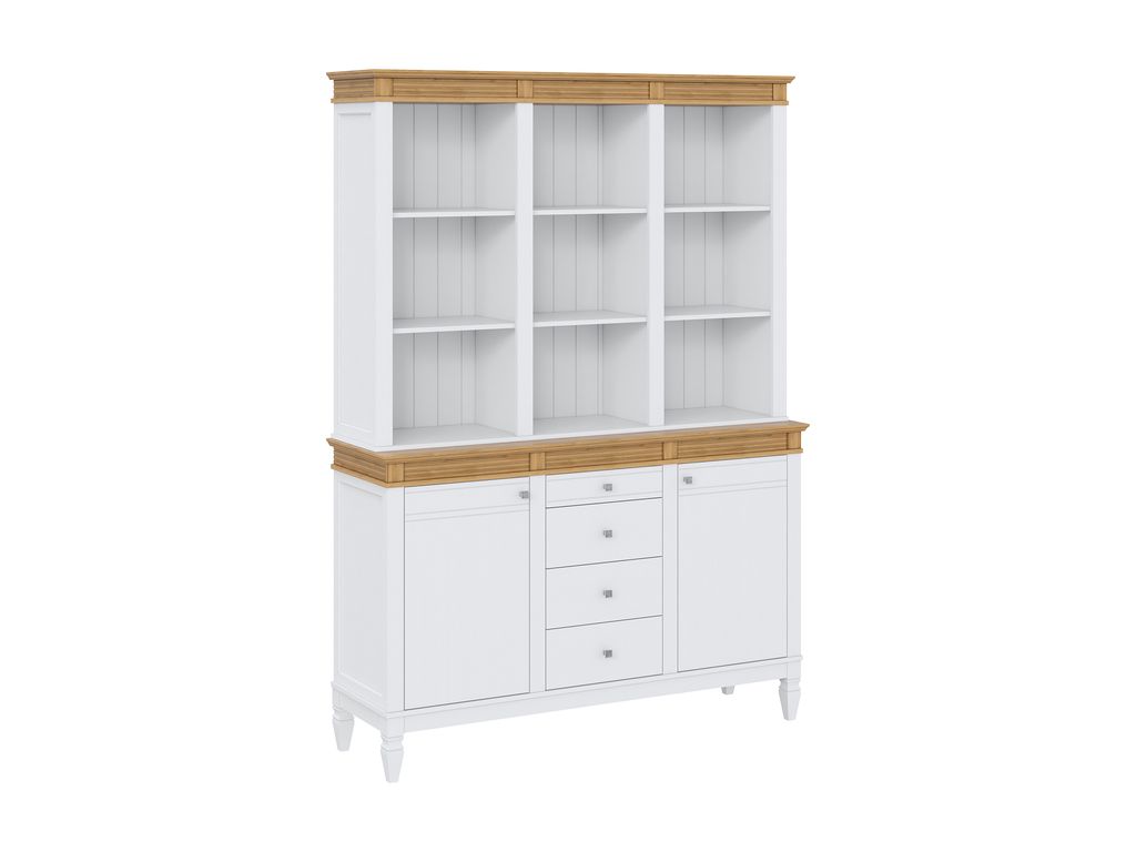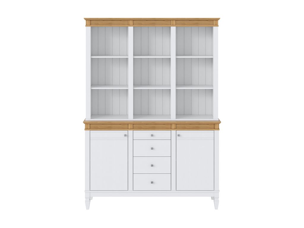 Описание: буфет выполнен из массива сосны. Удобный и вместительный, очень прост, но при этом функционален. Отлично впишется как в обеденную, так и в гостиную. Буфет представляет три секции с полками. Посередине внизу находятся выдвижные ящики, которыми приятно пользоваться благодаря встроенным доводчикам.