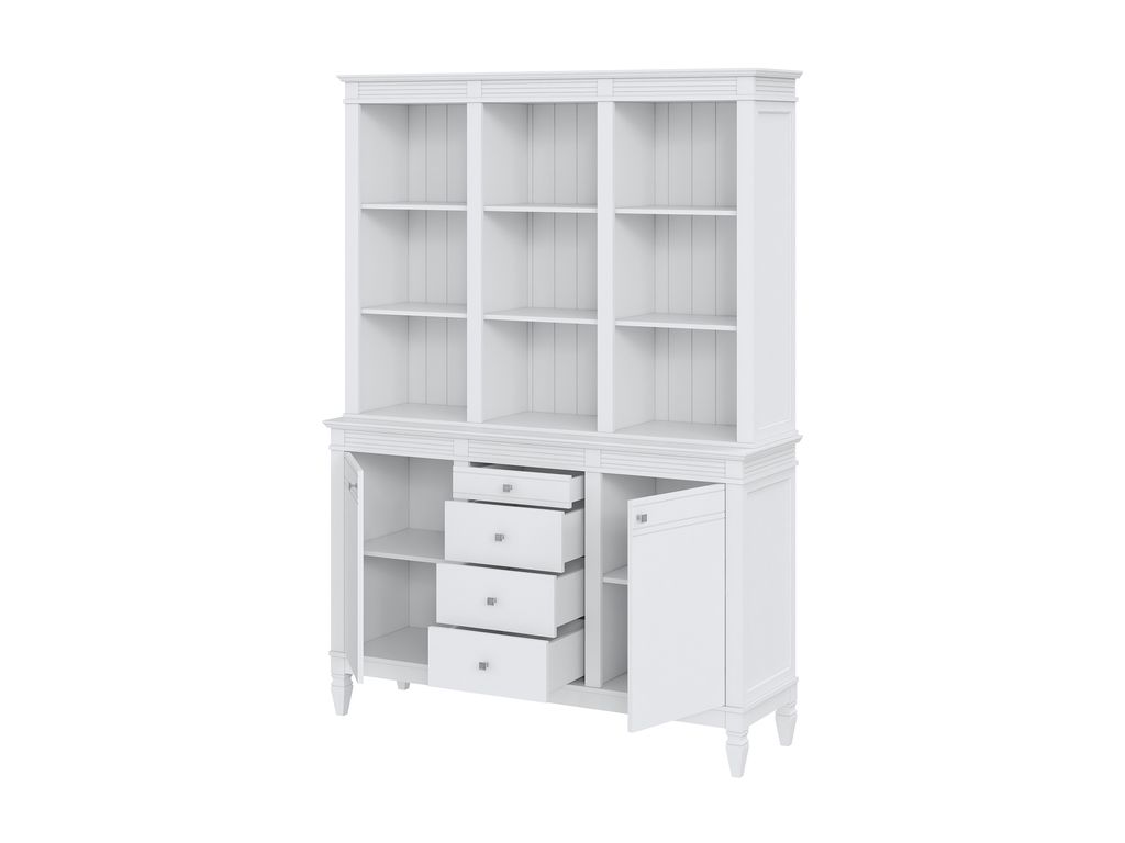Описание: буфет выполнен из массива сосны. Удобный и вместительный, очень прост, но при этом функционален. Отлично впишется как в обеденную, так и в гостиную. Буфет представляет три секции с полками. Посередине внизу находятся выдвижные ящики, которыми приятно пользоваться благодаря встроенным доводчикам.