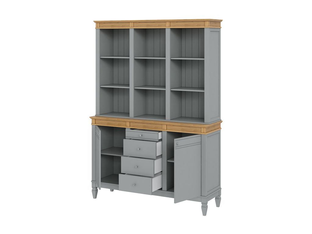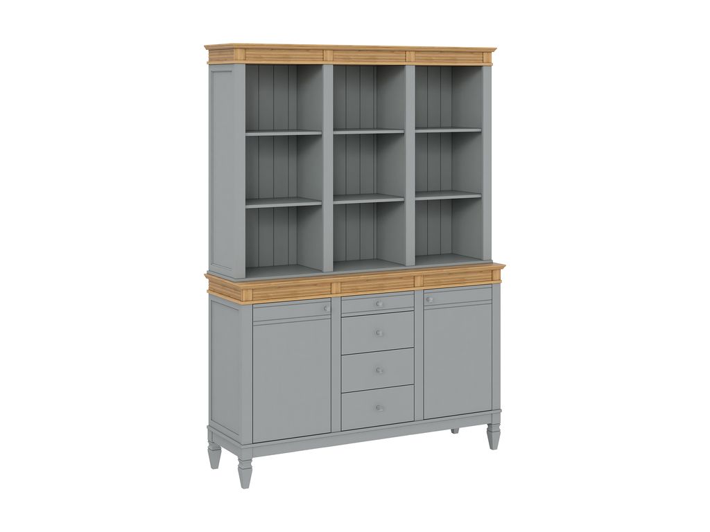 Описание: буфет выполнен из массива сосны. Удобный и вместительный, очень прост, но при этом функционален. Отлично впишется как в обеденную, так и в гостиную. Буфет представляет три секции с полками. Посередине внизу находятся выдвижные ящики, которыми приятно пользоваться благодаря встроенным доводчикам.