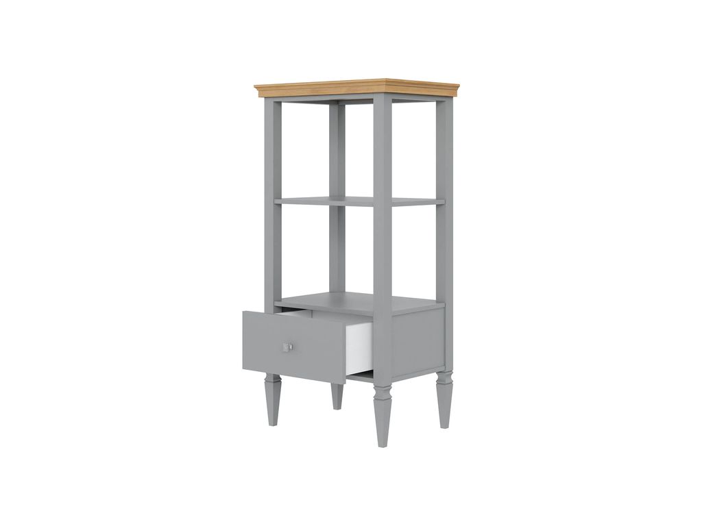 Описание: этажерка оснащена одной полкой и одним выдвижным ящиком. Направляющие на ящике с доводчиками. Высокие ножки обеспечивают оптимальный доступ при уборке.