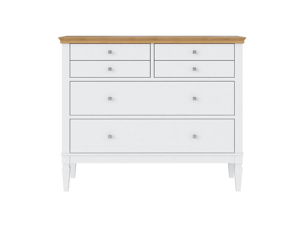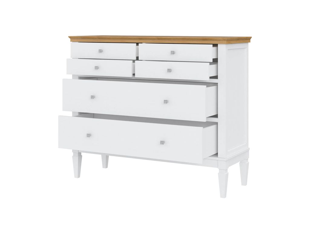Описание: комод оснащен двумя большими и четырьмя маленькими ящиками. Фурнитура на ящиках с доводчиками. Высокие ножки обеспечивают оптимальный доступ при уборке.