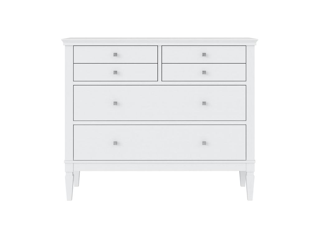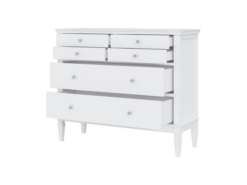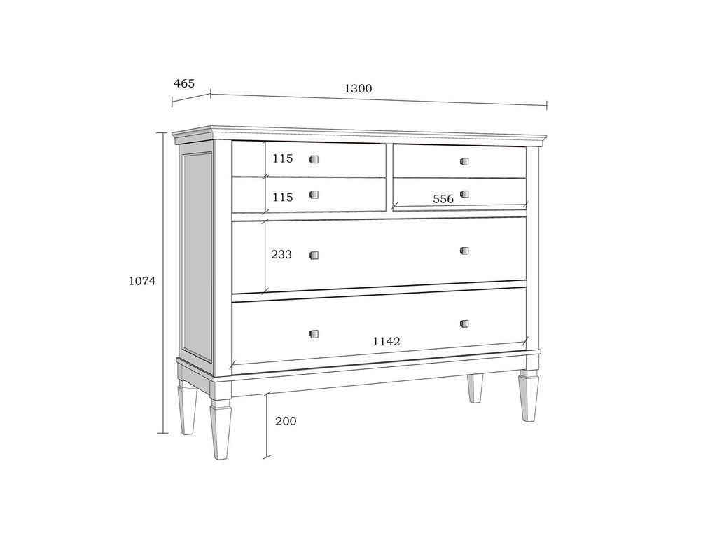 Описание: комод оснащен двумя большими и четырьмя маленькими ящиками. Фурнитура на ящиках с доводчиками. Высокие ножки обеспечивают оптимальный доступ при уборке.