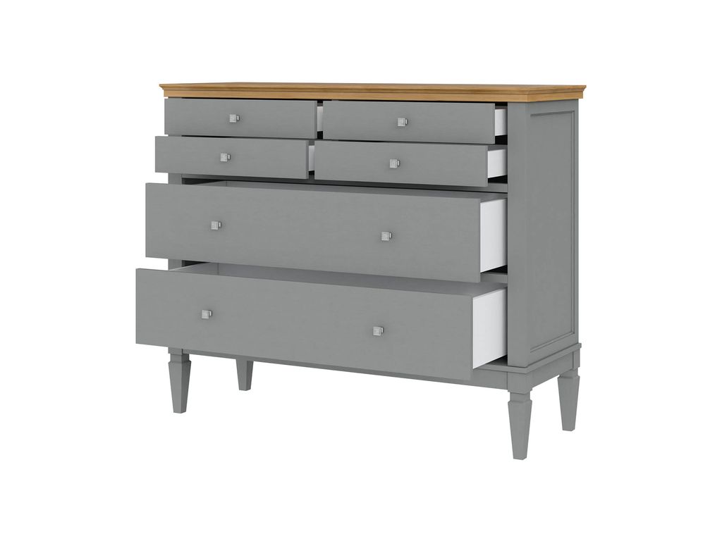 Описание: комод оснащен двумя большими и четырьмя маленькими ящиками. Фурнитура на ящиках с доводчиками. Высокие ножки обеспечивают оптимальный доступ при уборке.