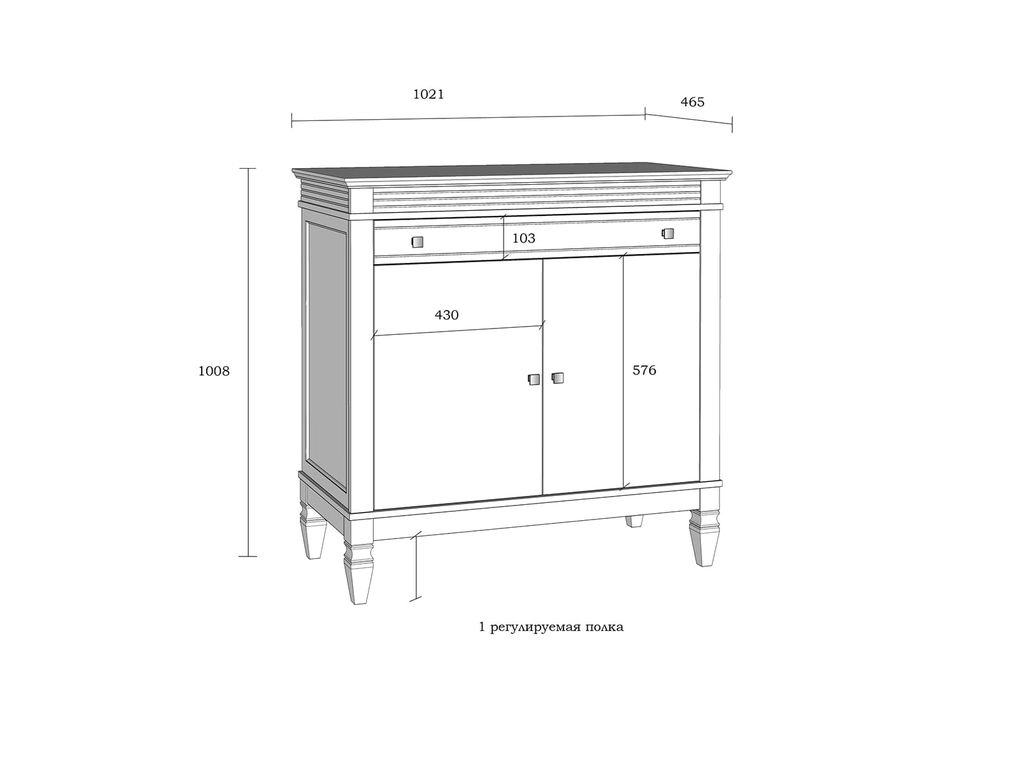 Описание: комод оснащен двумя распашными дверками с полкой внутри и одним широким ящиком. Фурнитура на дверях и ящике с доводчиками. Высокие ножки обеспечивают оптимальный доступ при уборке.