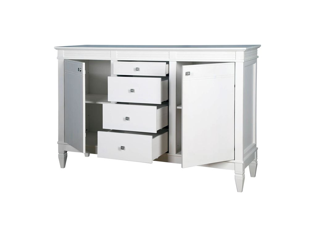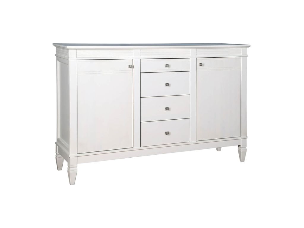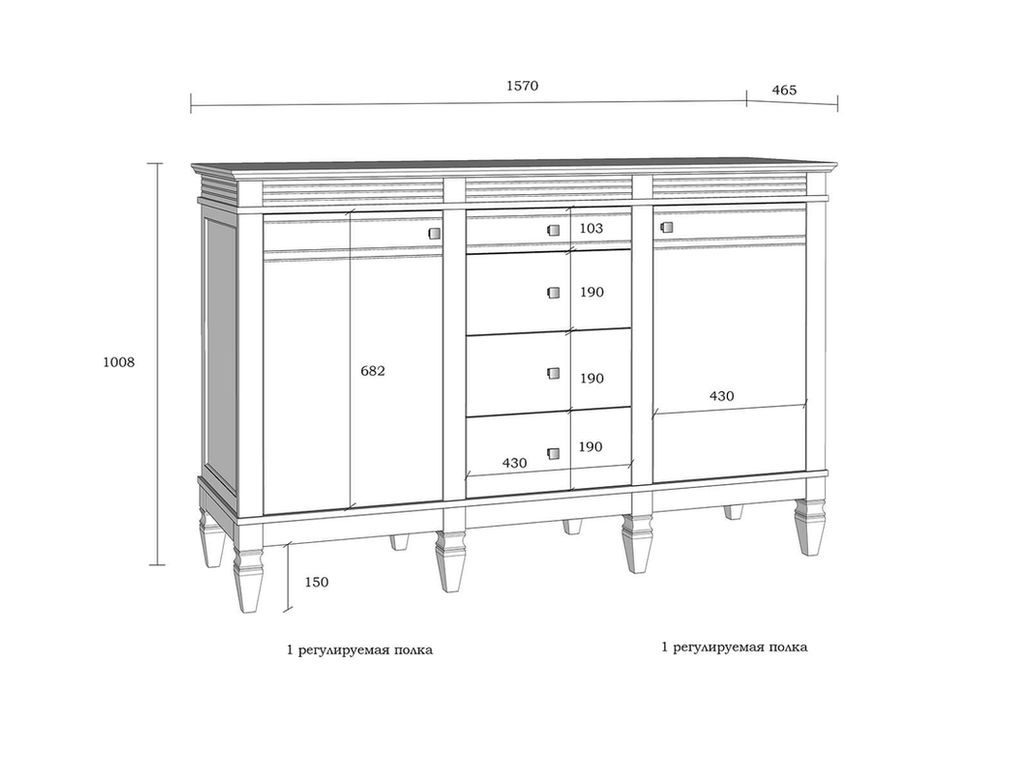 Описание: комод оснащен двумя распашными дверками с полками внутри и четырьмя ящиками. Фурнитура на дверях и ящиках с доводчиками. Высокие ножки обеспечивают оптимальный доступ при уборке.