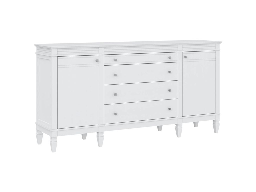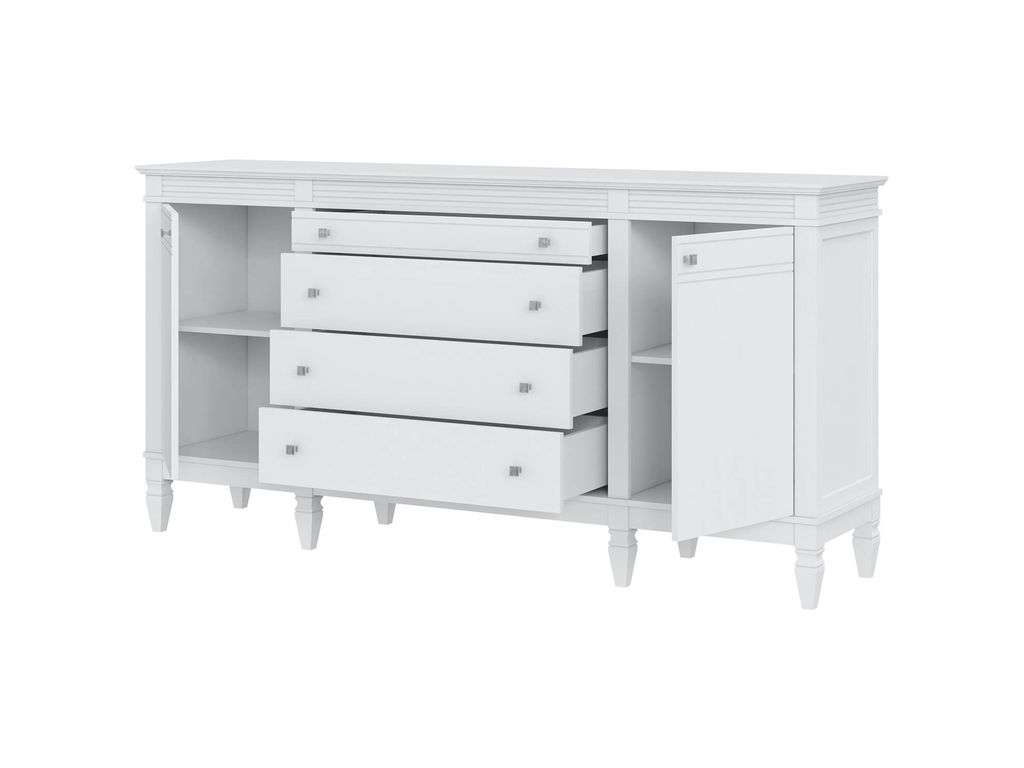 Описание: комод оснащен двумя распашными дверками с полками внутри и четырьмя широкими ящиками. Фурнитура на дверях и ящиках с доводчиками. Высокие ножки обеспечивают оптимальный доступ при уборке.