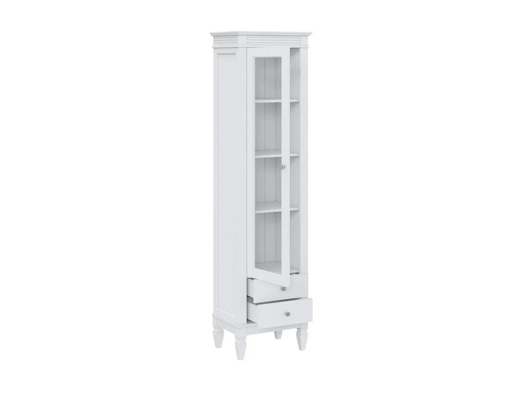 Описание: стеллаж "Ольса" - отличный вариант для хранения любимых книг. Здесь они будут в полном порядке и всегда под рукой. Оснащен тремя вместительными полками за стеклянной дверью и двумя ящиками. Устойчиво держится на высоких ножках. Хороший вариант для гостиной, детской комнаты или кабинета. Может использоваться самостоятельно или в сочетании с другими предметами из этой коллекции.