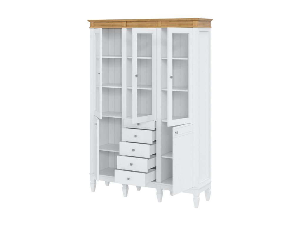Описание: большой и вместительный стеллаж "Ольса" - находка для просторной гостиной, библиотеки или кабинета. Здесь вы сможете разместить не только любимые книги, но и посуду, постельное белье и другие нужные вещи. Визуально разделен на три вертикальных секции. Сделан из натурального массива, поэтому может выдерживать значительные нагрузки.