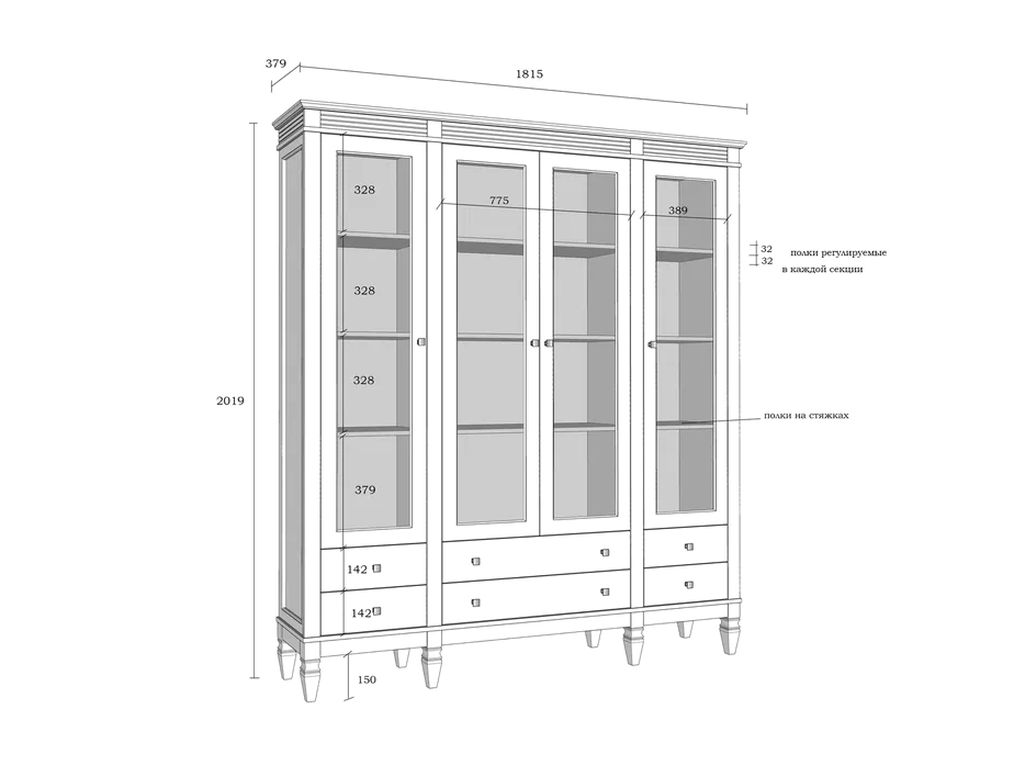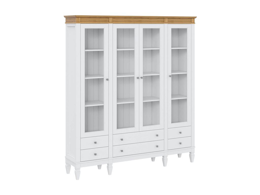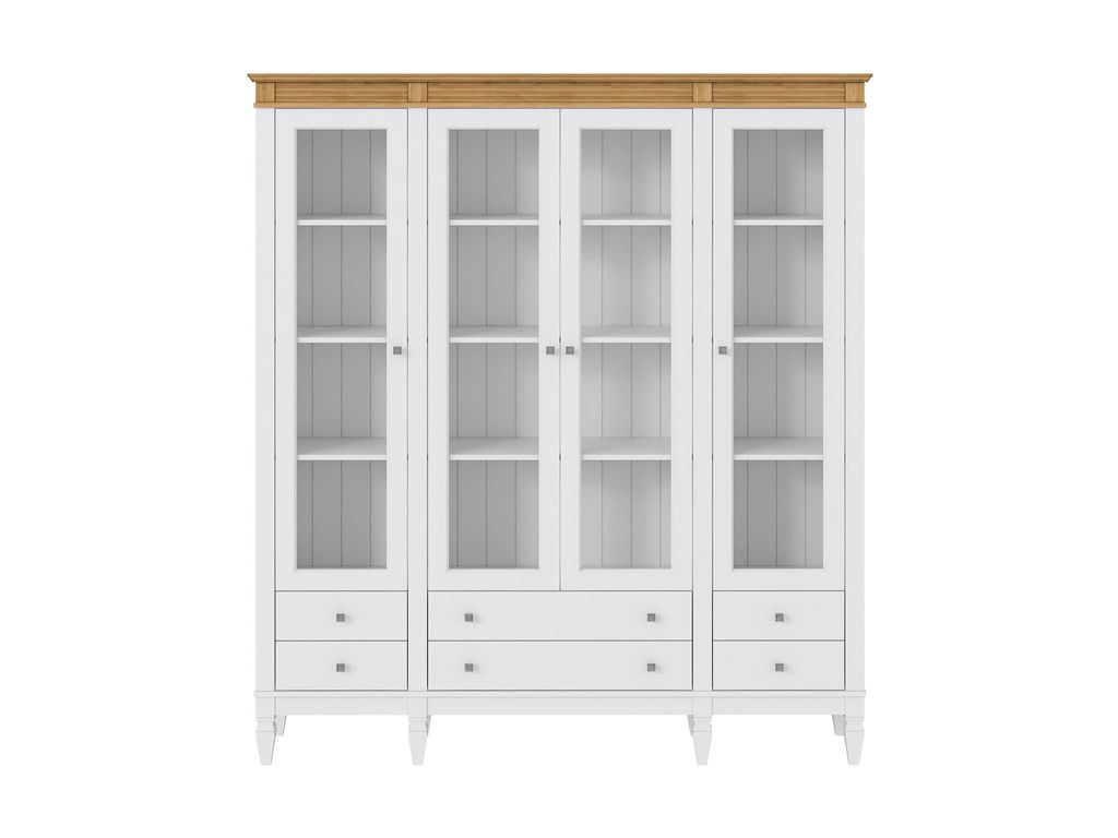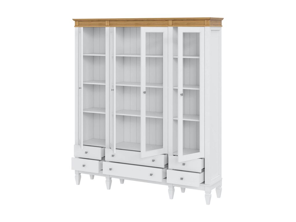 Описание: большой и вместительный стеллаж "Ольса" - находка для просторной гостиной, библиотеки или кабинета. Здесь вы сможете разместить не только любимые книги, но и посуду, а также другие нужные вещи. Визуально разделен на три вертикальных секции, в каждой из которых четыре полки за стеклянными дверями и 6 ящиков. Сделан из натурального массива, поэтому может выдерживать значительные нагрузки.