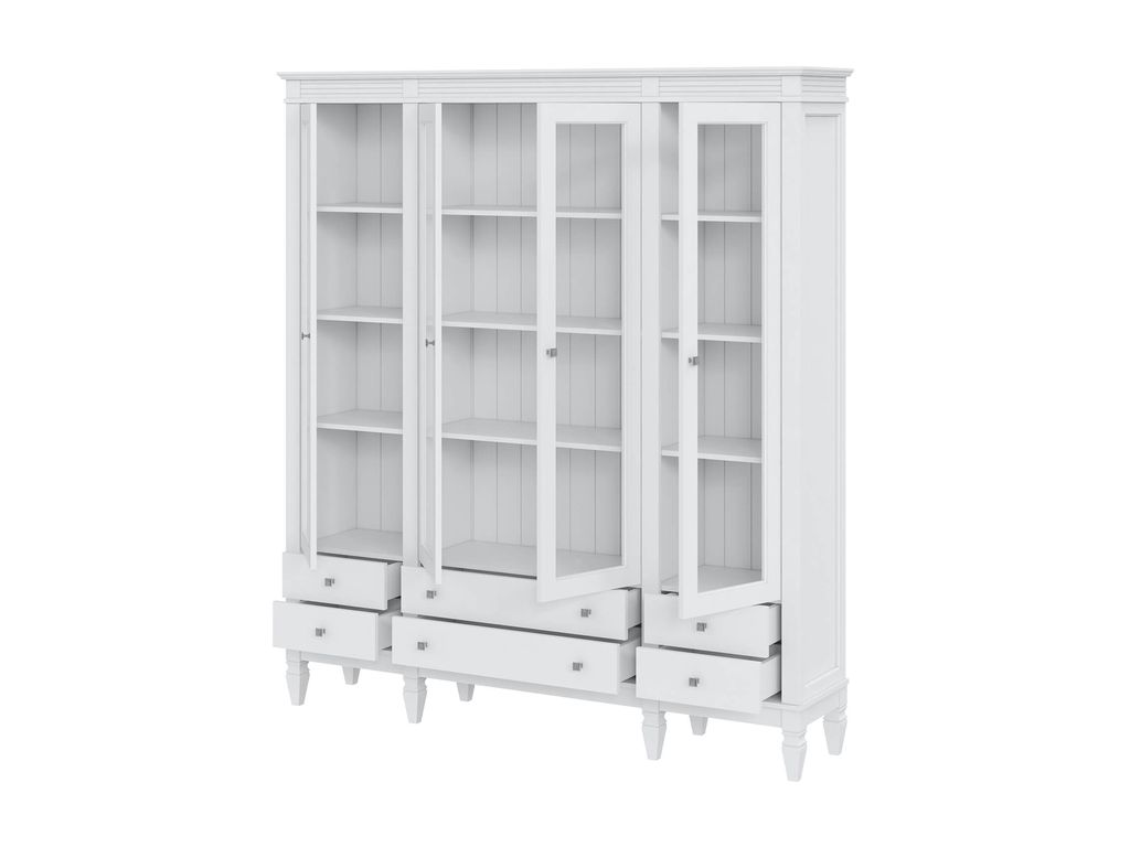 Описание: большой и вместительный стеллаж "Ольса" - находка для просторной гостиной, библиотеки или кабинета. Здесь вы сможете разместить не только любимые книги, но и посуду, а также другие нужные вещи. Визуально разделен на три вертикальных секции, в каждой из которых четыре полки за стеклянными дверями и 6 ящиков. Сделан из натурального массива, поэтому может выдерживать значительные нагрузки.