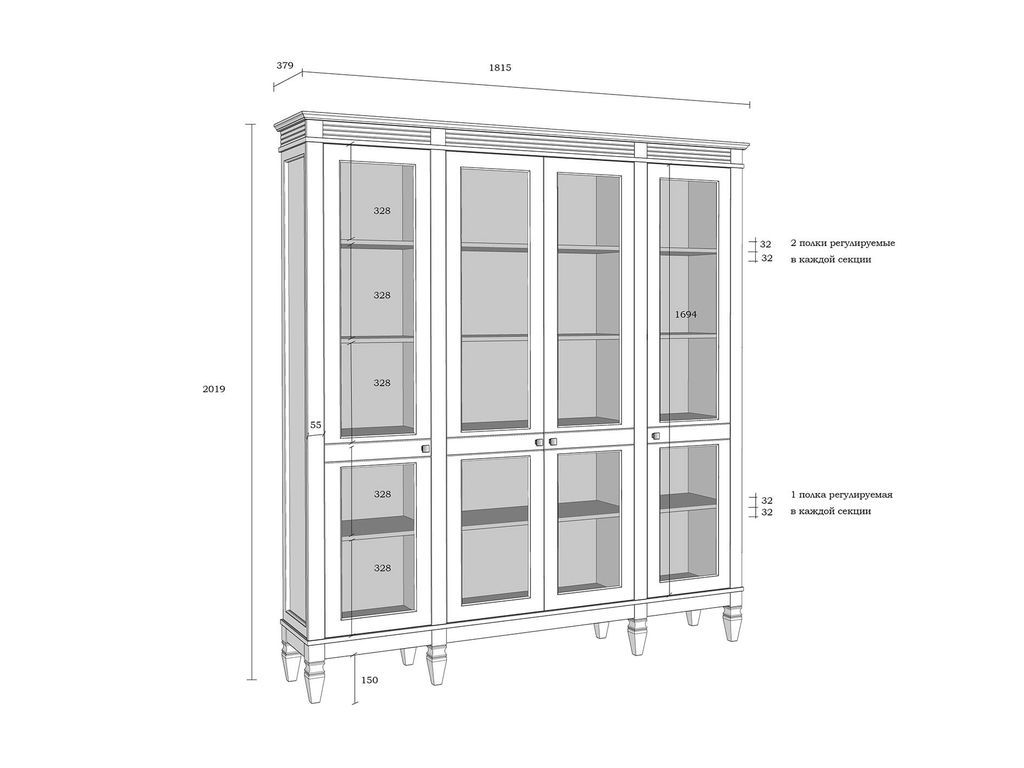 Описание: большой и вместительный стеллаж "Ольса" - находка для просторной гостиной, библиотеки или кабинета. Здесь вы сможете разместить не только любимые книги, но и посуду, а также другие нужные вещи. Визуально разделен на три вертикальных секции, в каждой из которых четыре полки. Оснащен четырьмя стеклянными распашными дверями. Сделан из натурального массива, поэтому может выдерживать значительные нагрузки.