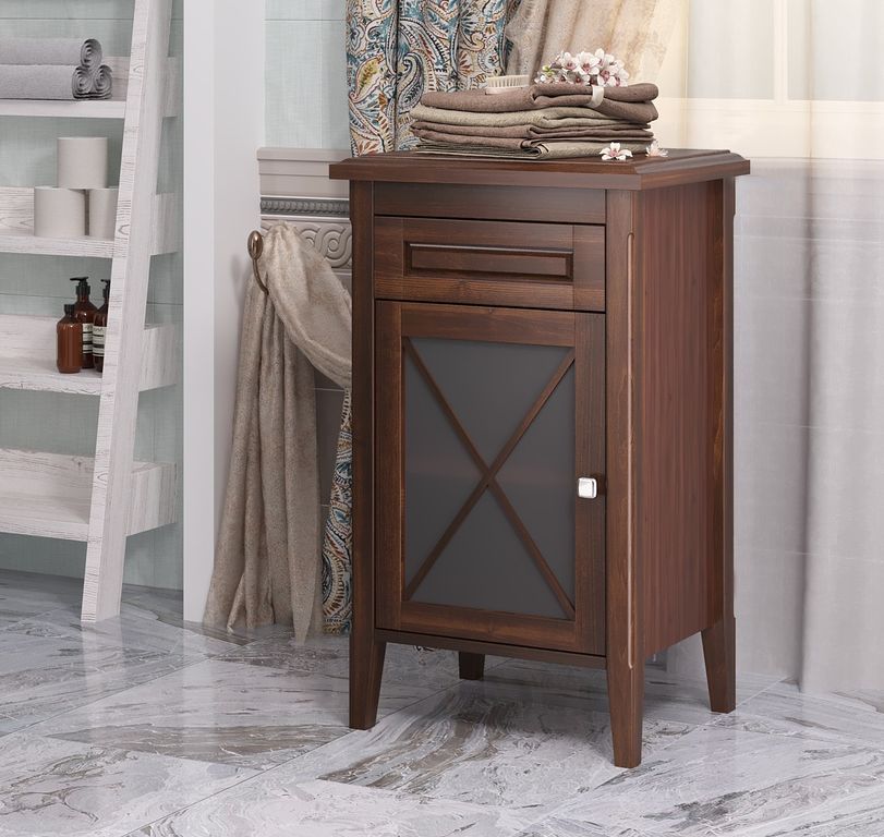 Коллекцию прекрасно дополняет высокий напольный пенал с дверцами с матовым стеклом и выдвижным ящиком.