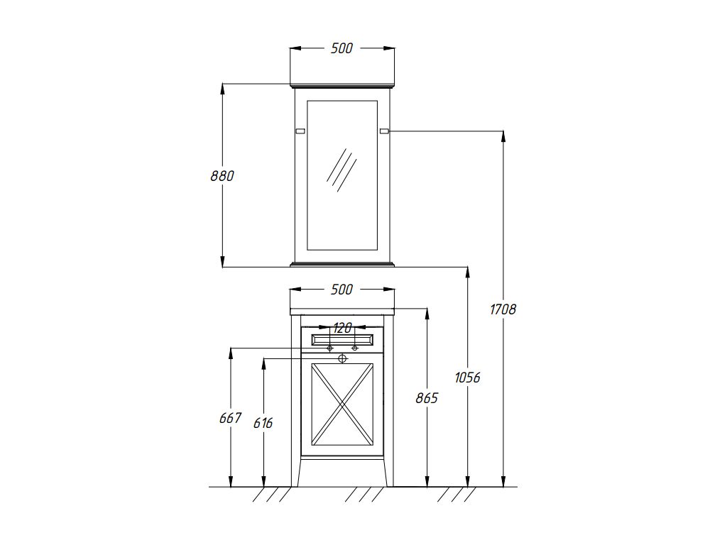Размер зеркала (Ш×В×Г), мм 500×880×45