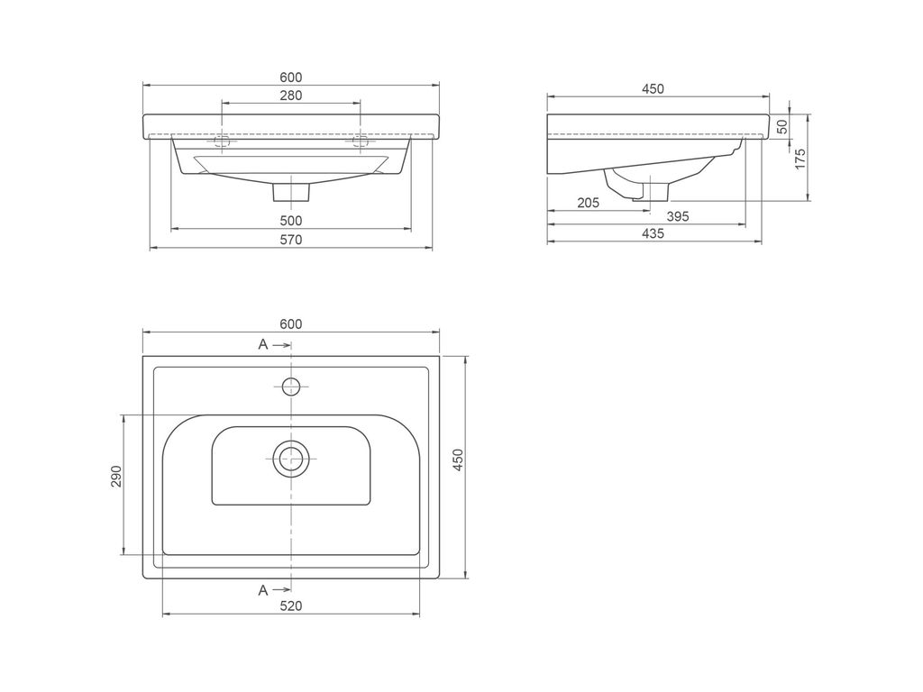 | Размер раковины (Ш×В×Г), мм | 600×175×450 |