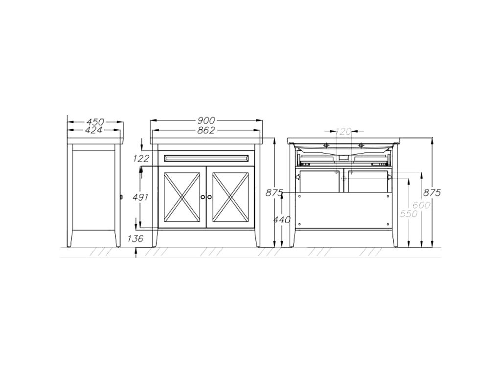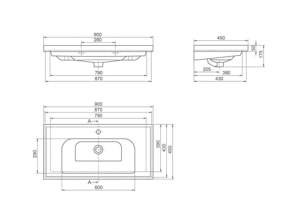 | Размер раковины (Ш×В×Г), мм | 900×175×450 |