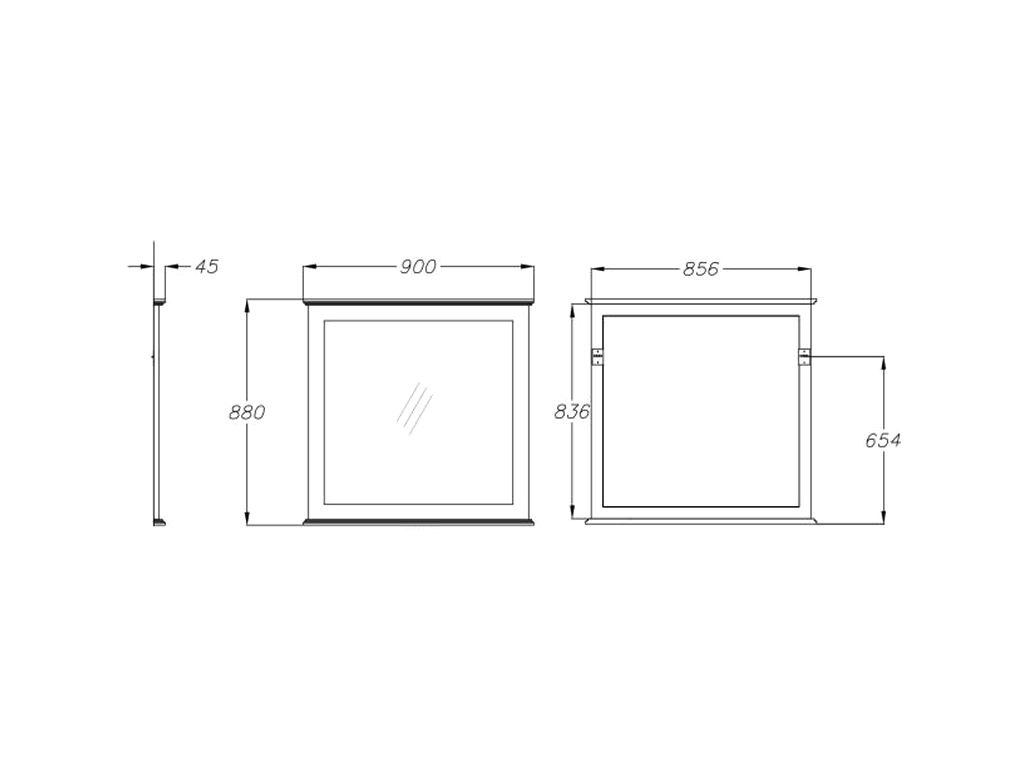 Размер зеркала (Ш×В×Г), мм 900×880×45
