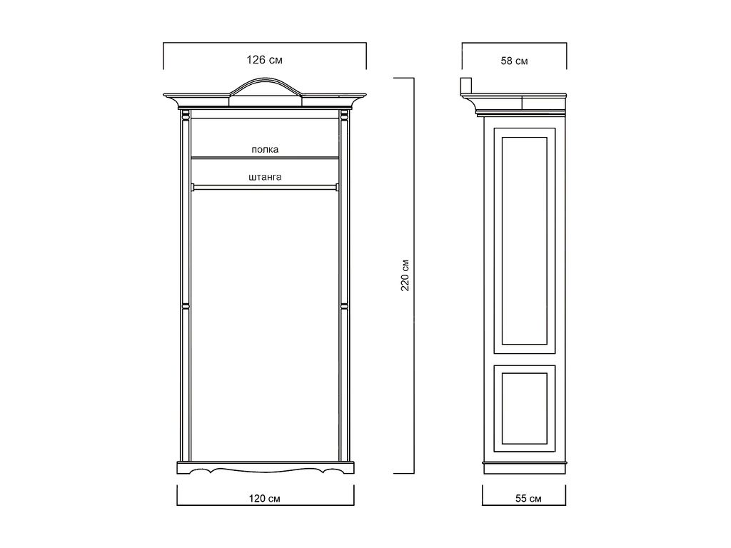Размеры (ШхВхГ): 1260x2200x580 мм