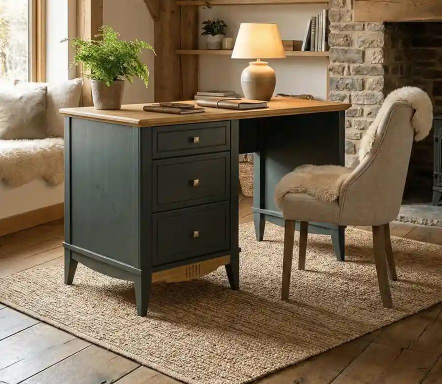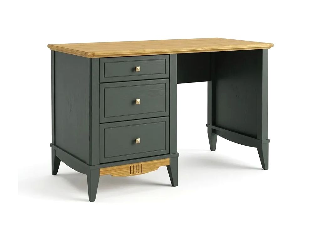 При сборке стола тумбу с ящиками можно расположить как справа, так и слева. Направляющие скрытого монтажа с доводчиком. Металлическая ручка-кнопка. Донья ящиков из оргалита древесного оттенка, стенки из массива сосны, окрашиваются в цвет корпуса.