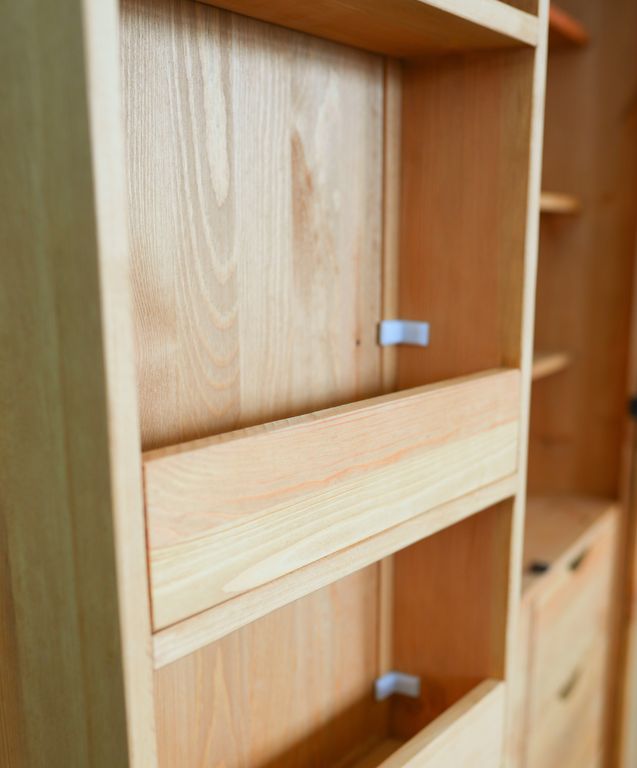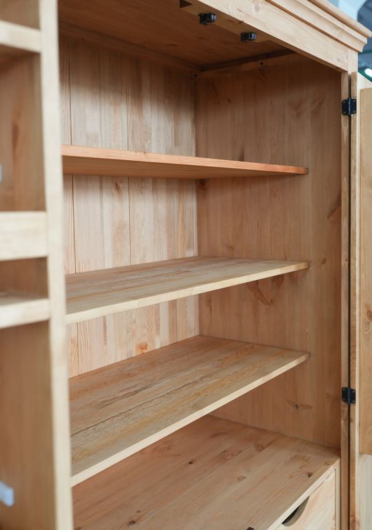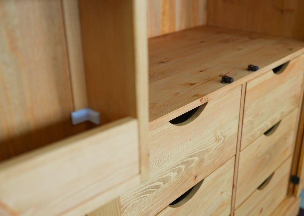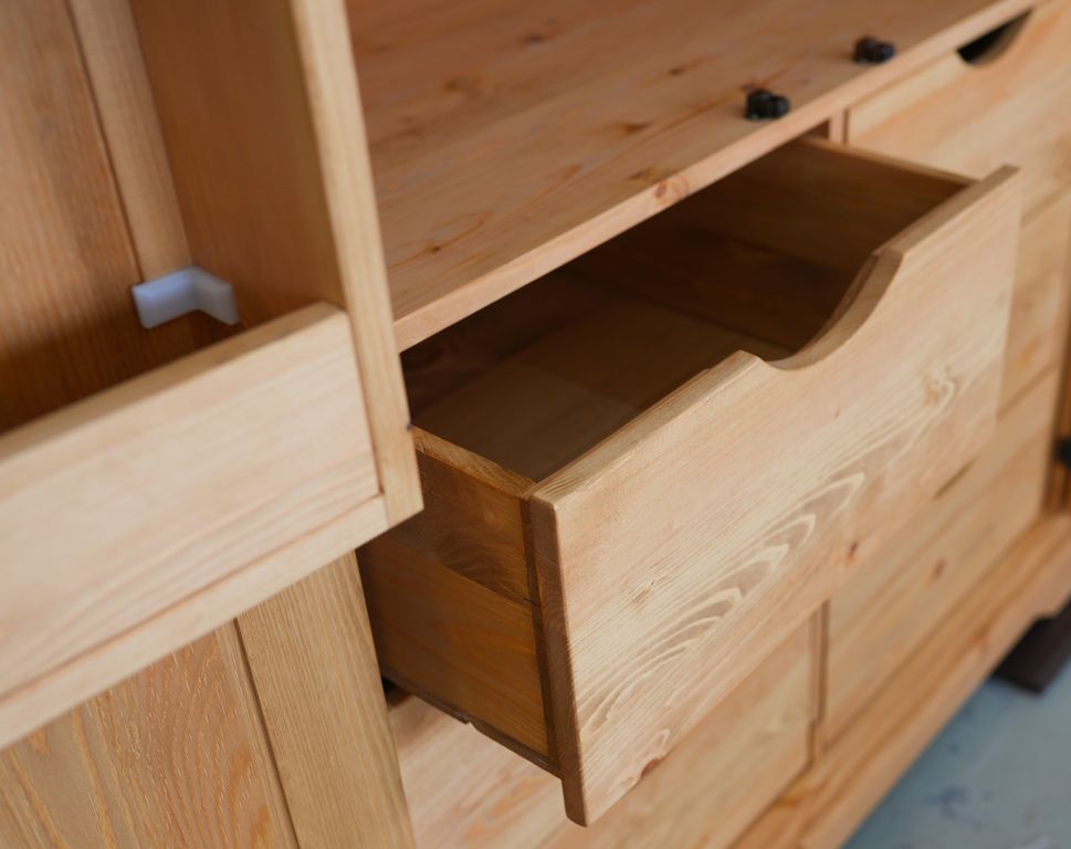 Ручки деревянные 2 шт. 3 полки, 6 выдвижных ящиков. Внутри на дверках полки.