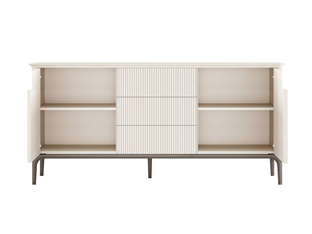 Верхняя часть окрашена в цвет светлый беж (K07 - ближайший RAL 9001), низ в коричневый цвет (K09 - ncs 4005 y50r). Можно менять сделать двери с фрезеровкой или убрать фрезеровку на ящиках. Изменения указывайте в комментарии к заказу. Фасады и дверцы имеют систему открывания TIP-ON, открывание дверей и ящиков простым нажатием на фасад.