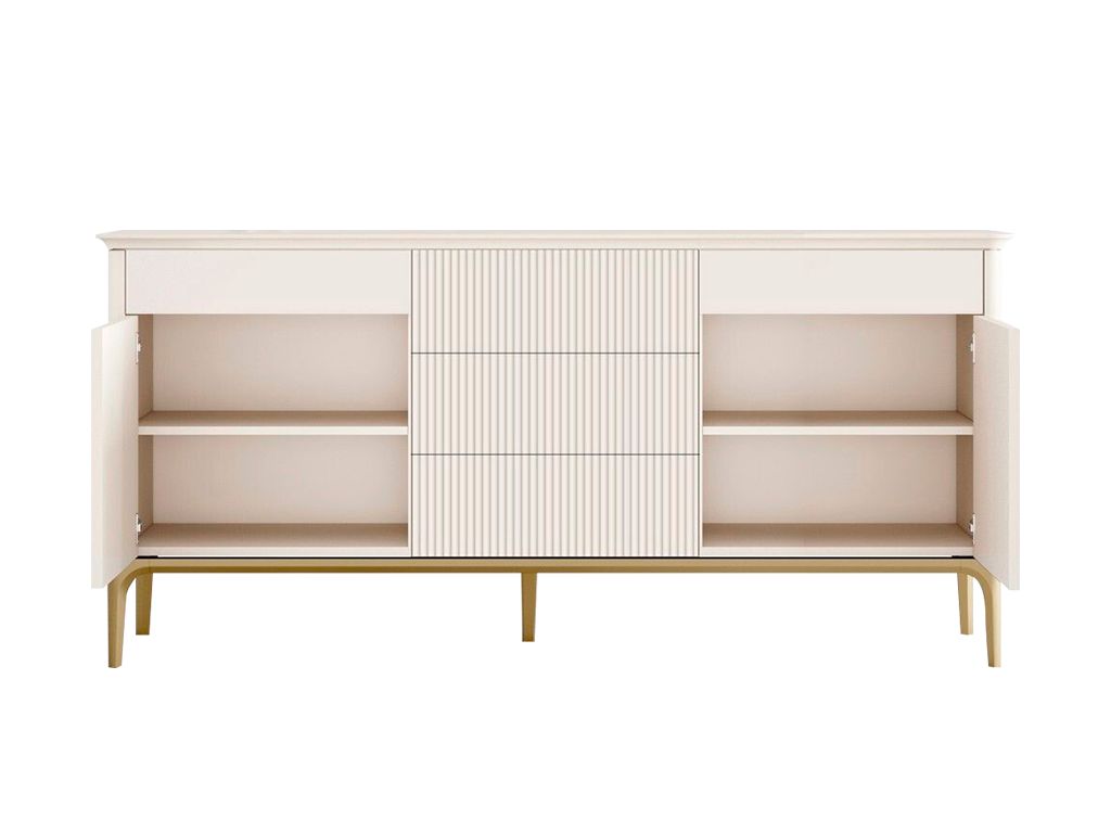 Верхняя часть окрашена в цвет светлый беж (K07 - ближайший RAL 9001), низ золотая патина. Фасады и дверцы имеют систему открывания TIP-ON, открывание дверей и ящиков простым нажатием на фасад.