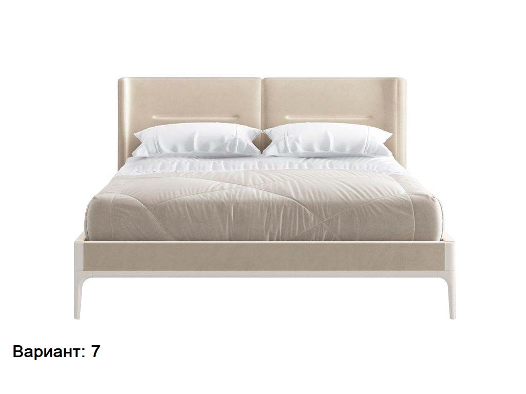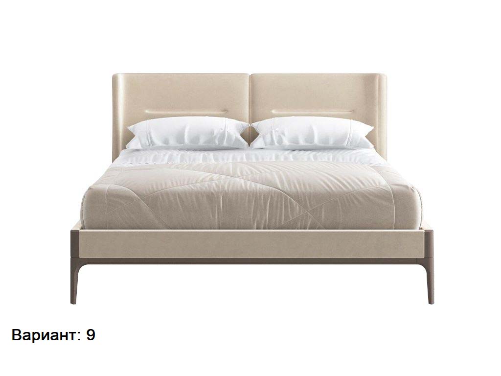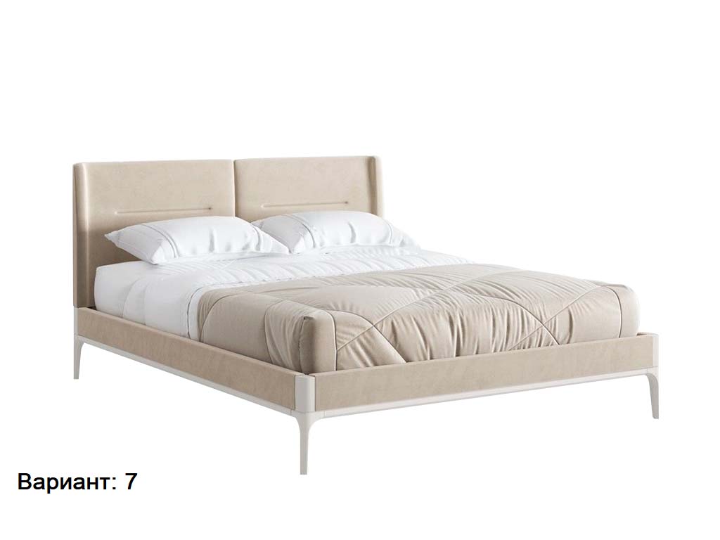Кровать с мягкими царгами, в ткани Bella 01. Вариант 7 - ножки окрашены в бежевый цвет (K07 - ближайший RAL 9001), вариант 9 - ножки окрашены в коричневый цвет (K09 - ncs 4005 y50r). На изображениях представлена модель с размером спального места 160*200 см.