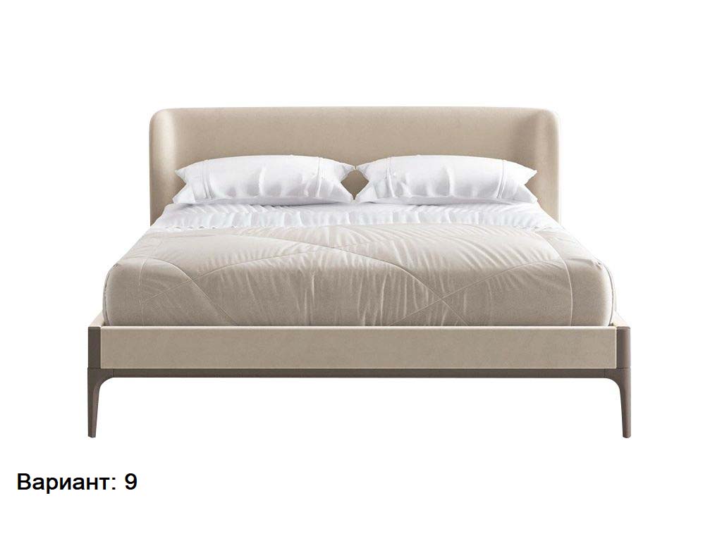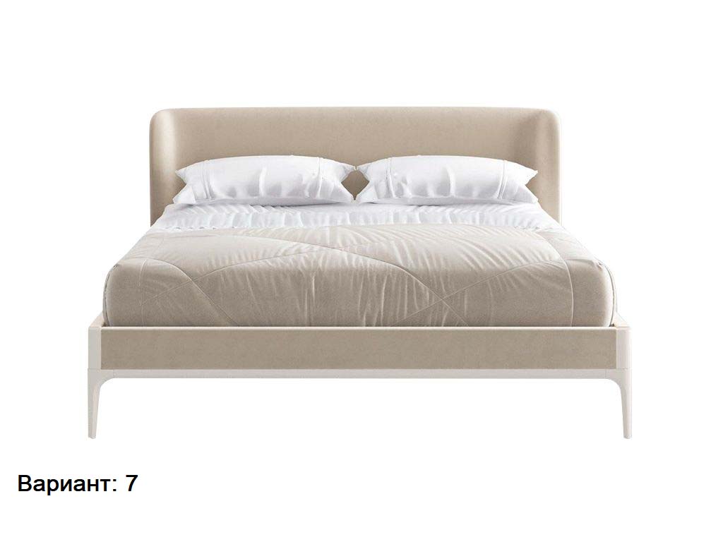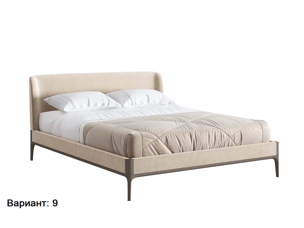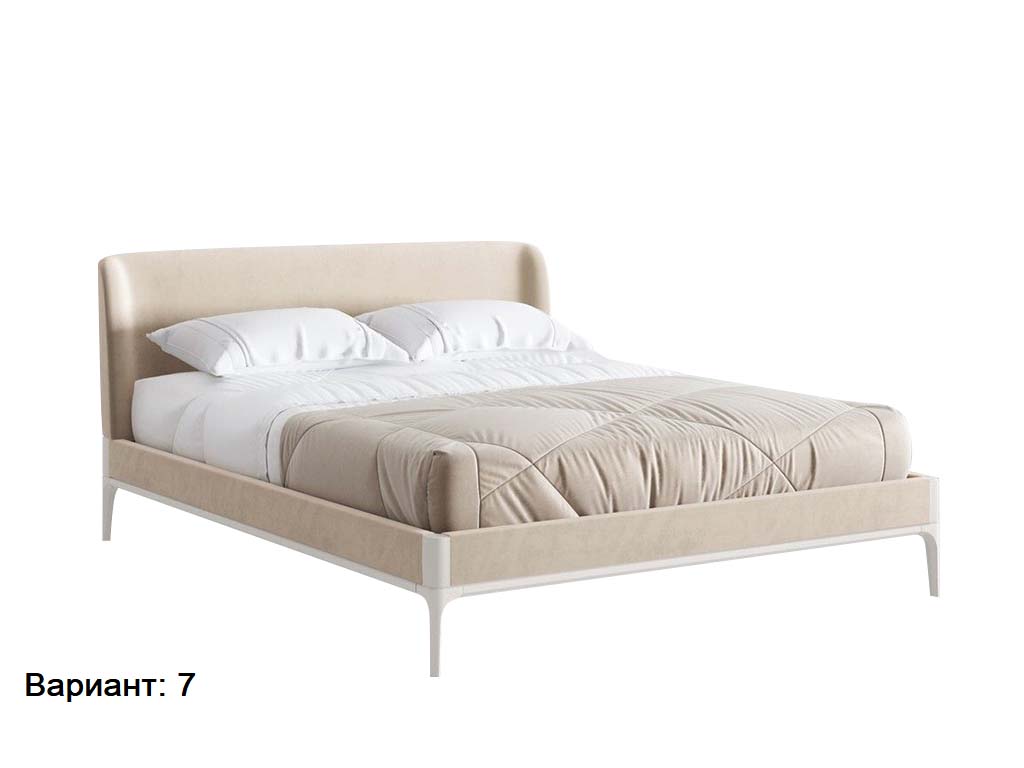 Кровать с мягкими царгами, в ткани Bella 01. Вариант 7 - ножки окрашены в бежевый цвет (K07 - ближайший RAL 9001), вариант 9 - ножки окрашены в коричневый цвет (K09 - ncs 4005 y50r). На изображениях представлена модель с размером спального места 160*200 см.
