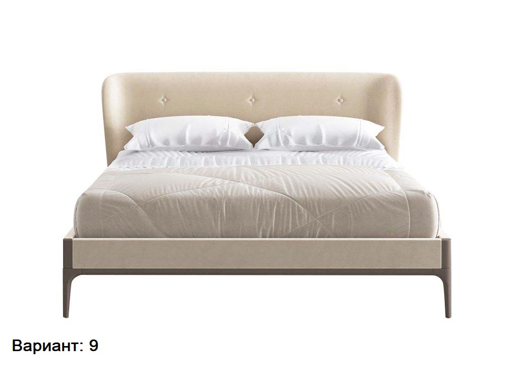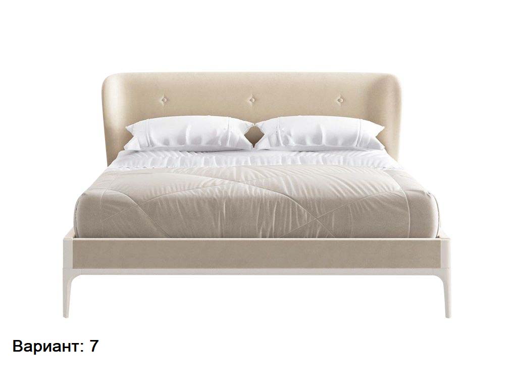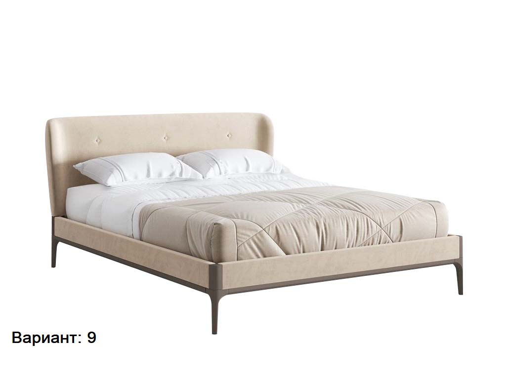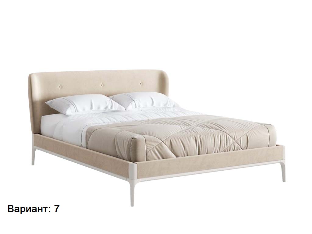 Кровать с мягкими царгами, в ткани Bella 01. Вариант 7 - ножки окрашены в бежевый цвет (K07 - ближайший RAL 9001), вариант 9 - ножки окрашены в коричневый цвет (K09 - ncs 4005 y50r). На изображениях представлена модель с размером спального места 160*200 см.