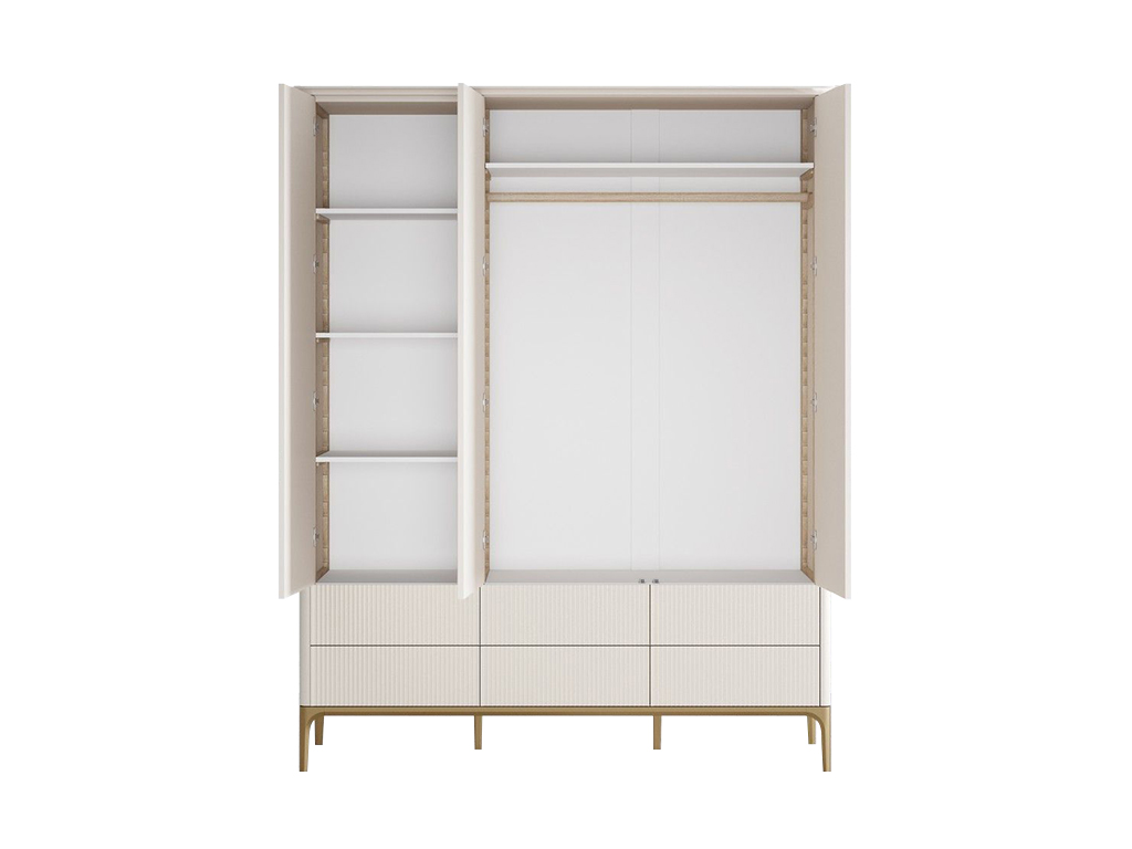 Верхняя часть окрашена в цвет светлый беж (K07 - ближайший RAL 9001), низ золотая патина. Двери имеют систему открывания TIP-ON, открывание дверей простым нажатием на фасад.