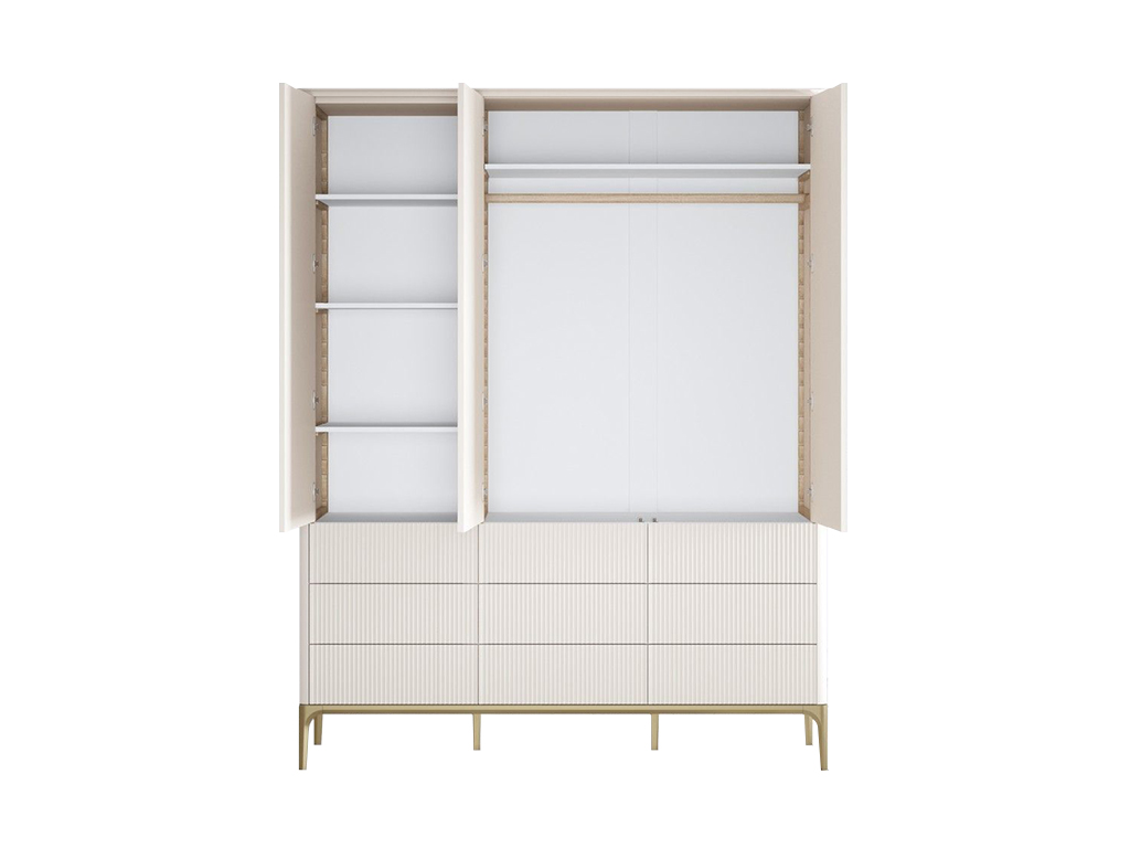 Верхняя часть окрашена в цвет светлый беж (K07 - ближайший RAL 9001), низ золотая патина. Двери имеют систему открывания TIP-ON, открывание дверей простым нажатием на фасад.
