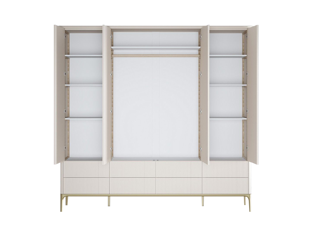 Верхняя часть окрашена в цвет светлый беж (K07 - ближайший RAL 9001), низ золотая патина. Двери имеют систему открывания TIP-ON, открывание дверей простым нажатием на фасад.