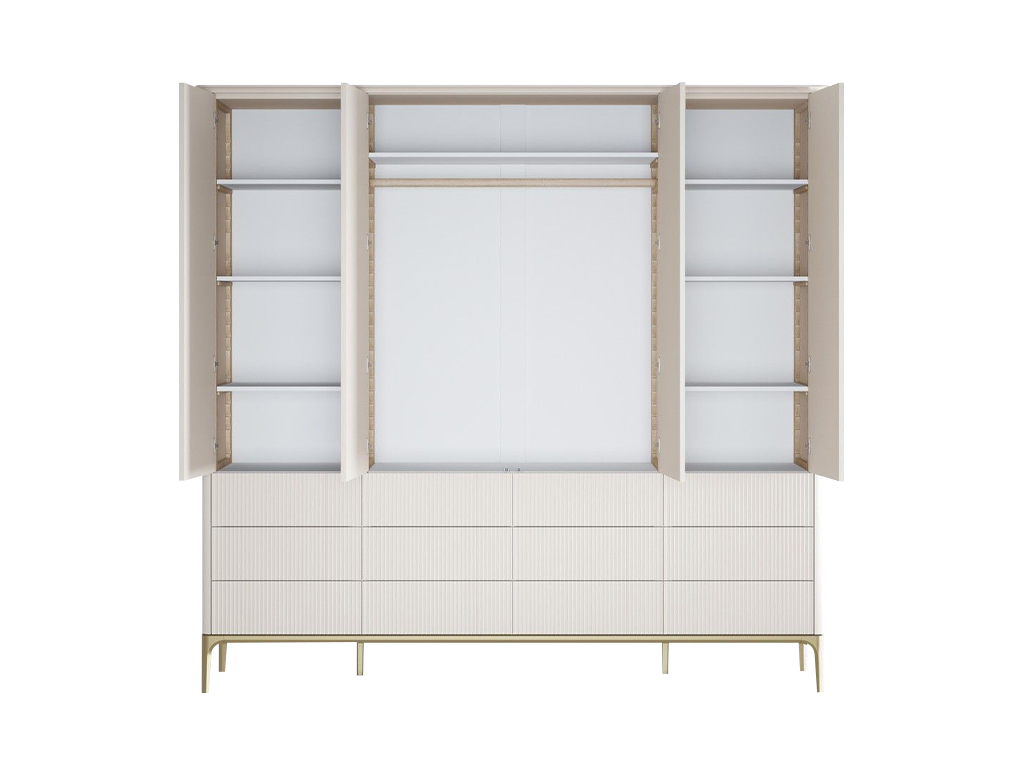 Верхняя часть окрашена в цвет светлый беж (K07 - ближайший RAL 9001), низ золотая патина. Двери имеют систему открывания TIP-ON, открывание дверей простым нажатием на фасад.