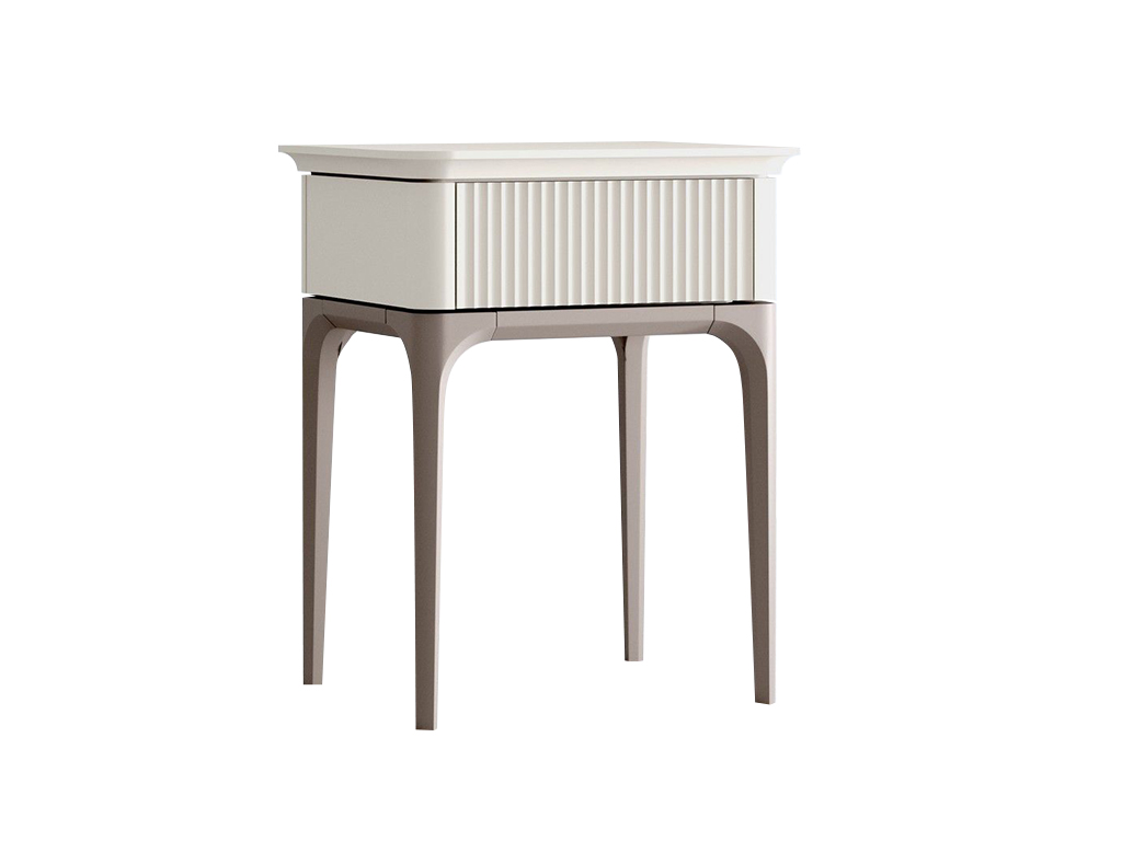 Верхняя часть окрашена в цвет светлый беж (K07 - ближайший RAL 9001), низ в коричневый цвет (K09 - ncs 4005 y50r). Имеет систему открывания TIP-ON, открывание ящиков простым нажатием на фасад.
